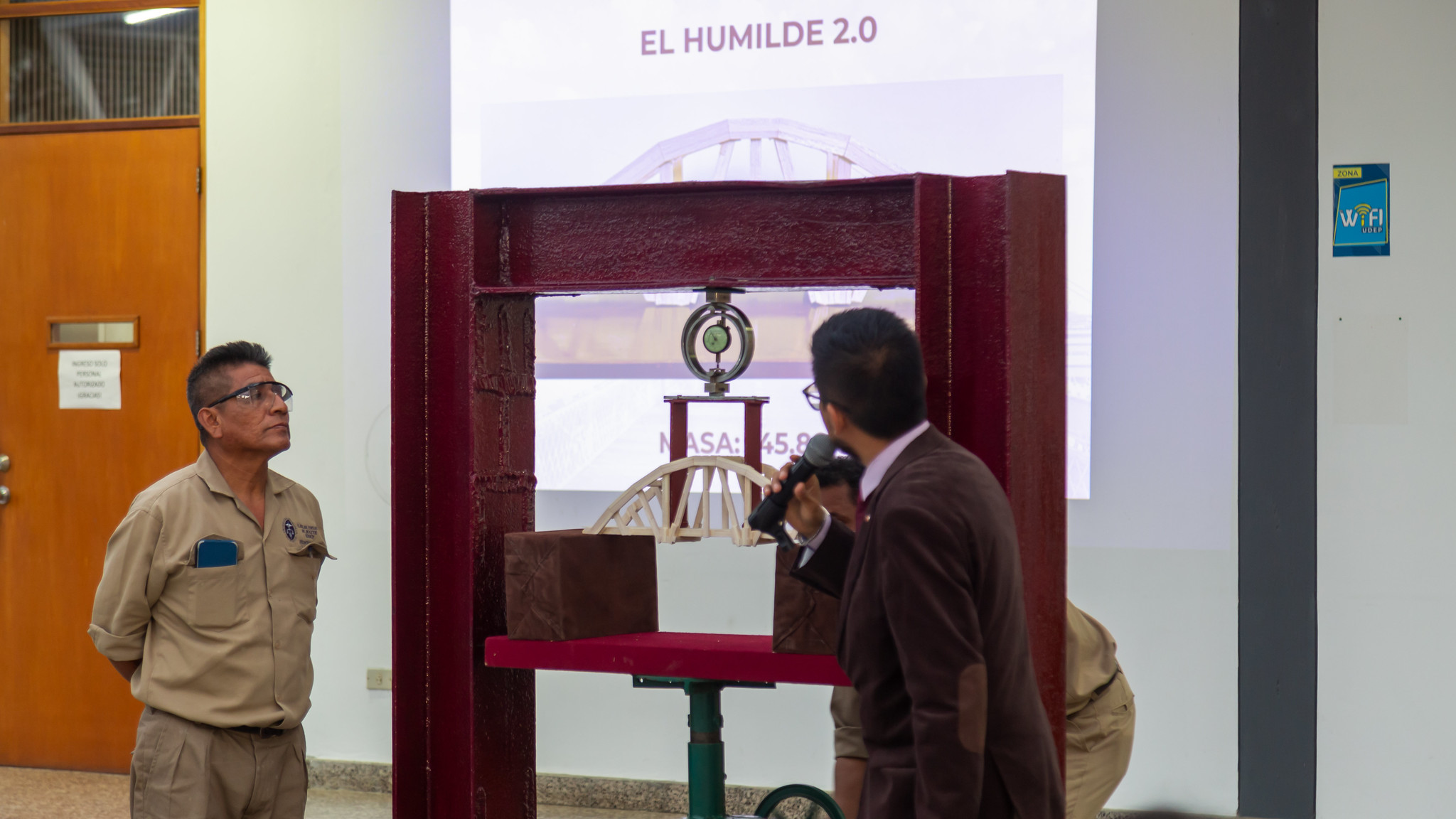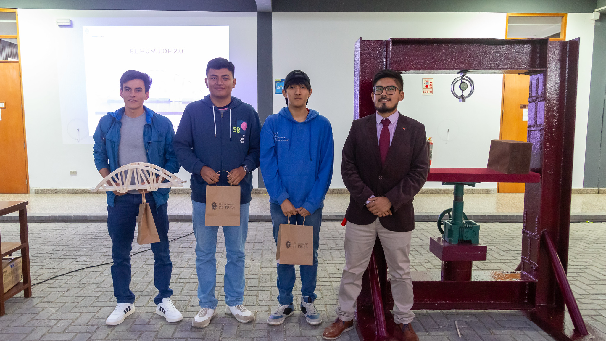 El puente ganador, bautizado como “Humilde 2.0” y creado por los alumnos Rogelio Rojas Fernández, Gabriel Benites Yarlequé y Washington Labán Chinguel, destacó al sobrepasar los límites y sostener más de 738 veces su propio peso.