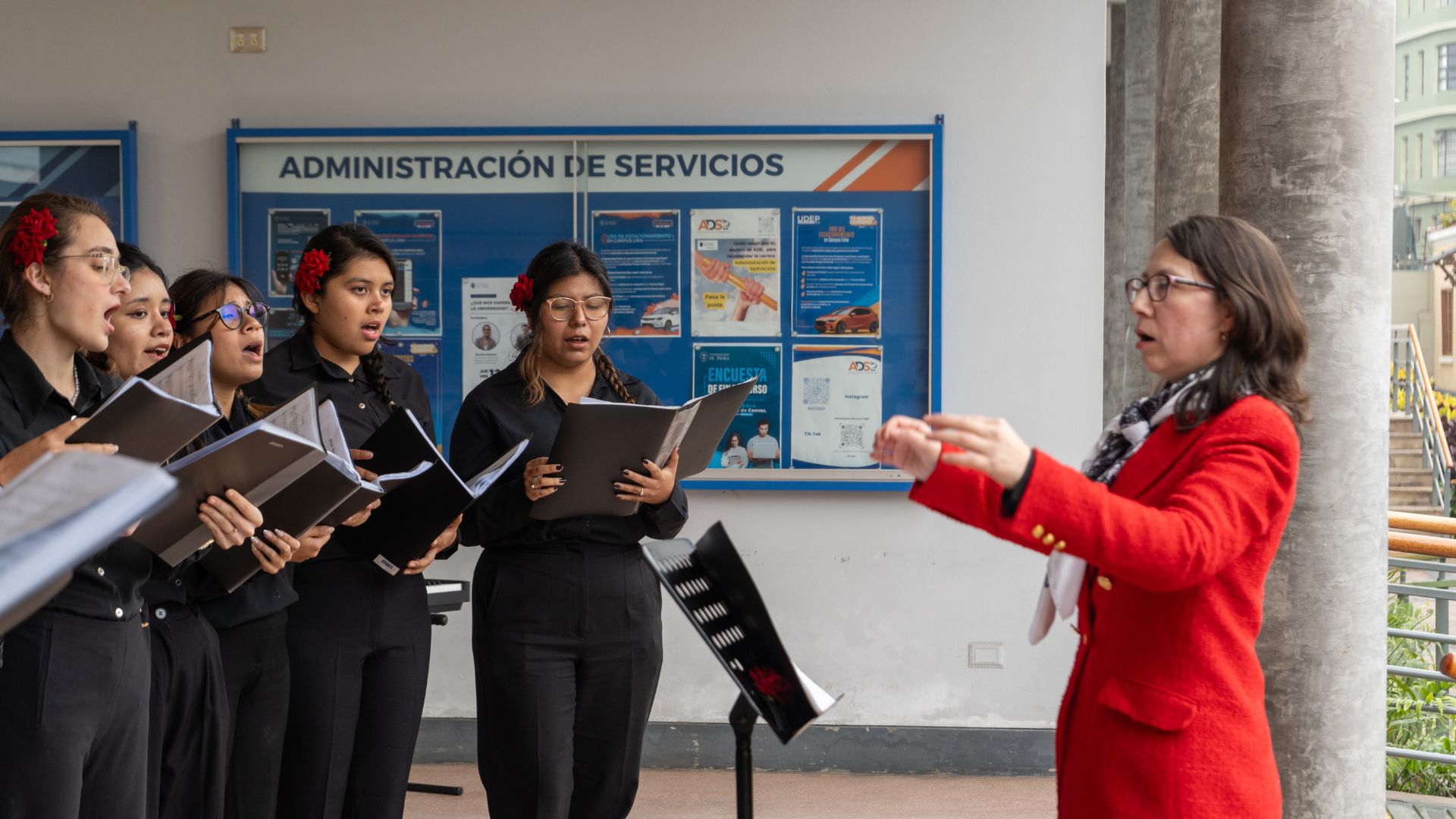 Durante la misa, en Piura, el Coro Universitario, integrado por alumnos de diferentes facultades, interpretó Aleluya, Gloria, Junto a ti María, entre otros temas. El capellán mayor agradeció a los jóvenes y, de manera especial, al maestro Arturo Hernández, al anunciar que con esta participación culminaba su labor como director del Coro de la UDEP en Piura, después de más de 30 años.
