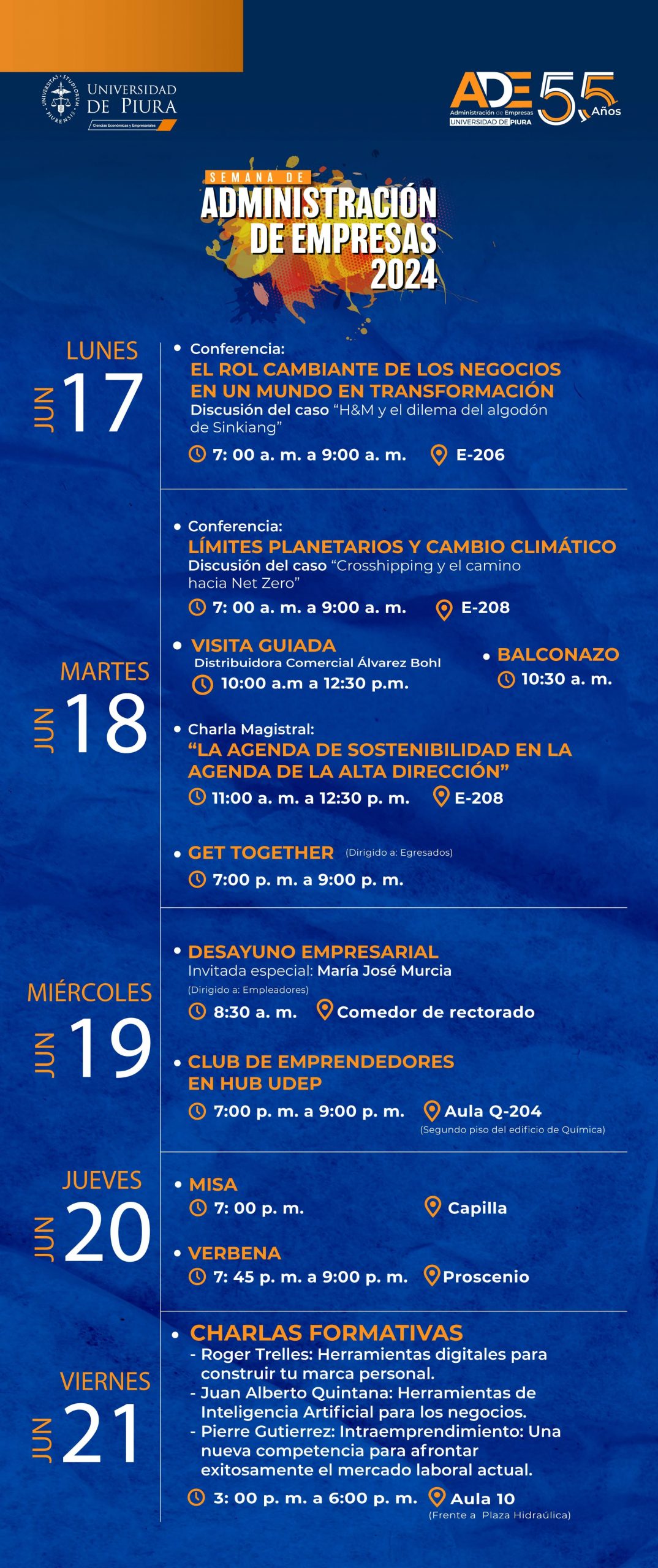Cabe destacar que esta charla magistral se desarrolló como parte de la celebración de los 55 años del programa académico de Administración de Empresas, el cual ha organizado una serie de actividades, del 17 al 21 de junio. Si quieres ver el programa completo, puedes hacer clic, aquí.