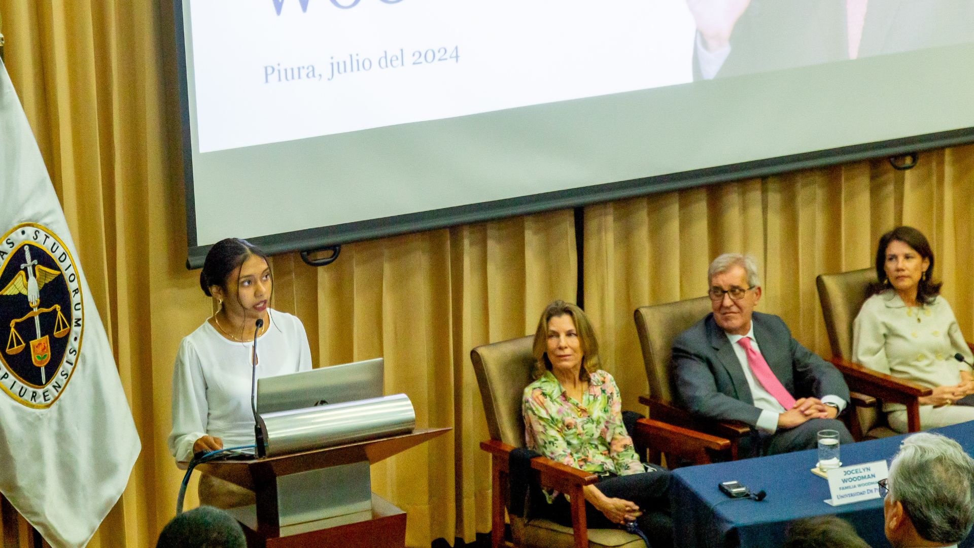 En la ceremonia de Campus Piura, Jocelyn Woodman, hija de Arturo Woodman, en representación de la familia agradeció el compromiso de las instituciones involucradas en hacer posible la Beca Woodman.