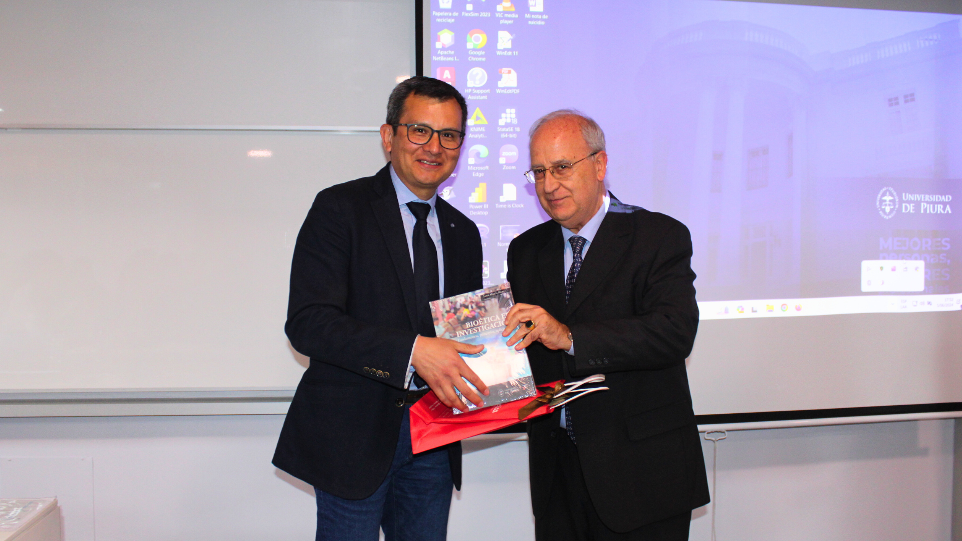En su segundo día, el Dr. Vivanco se reunió con el presidente y el Secretario Técnico del Comité Institucional de Ética en Investigación (CIEI) de la Universidad de Piura, donde se discutieron las políticas y procedimientos éticos aplicados en las investigaciones realizadas en la facultad. Finalmente, concluyó su visita con reuniones con el decano y el Consejo de Facultad, en las que se dialogó sobre las perspectivas y planes futuros para la enseñanza de la bioética.