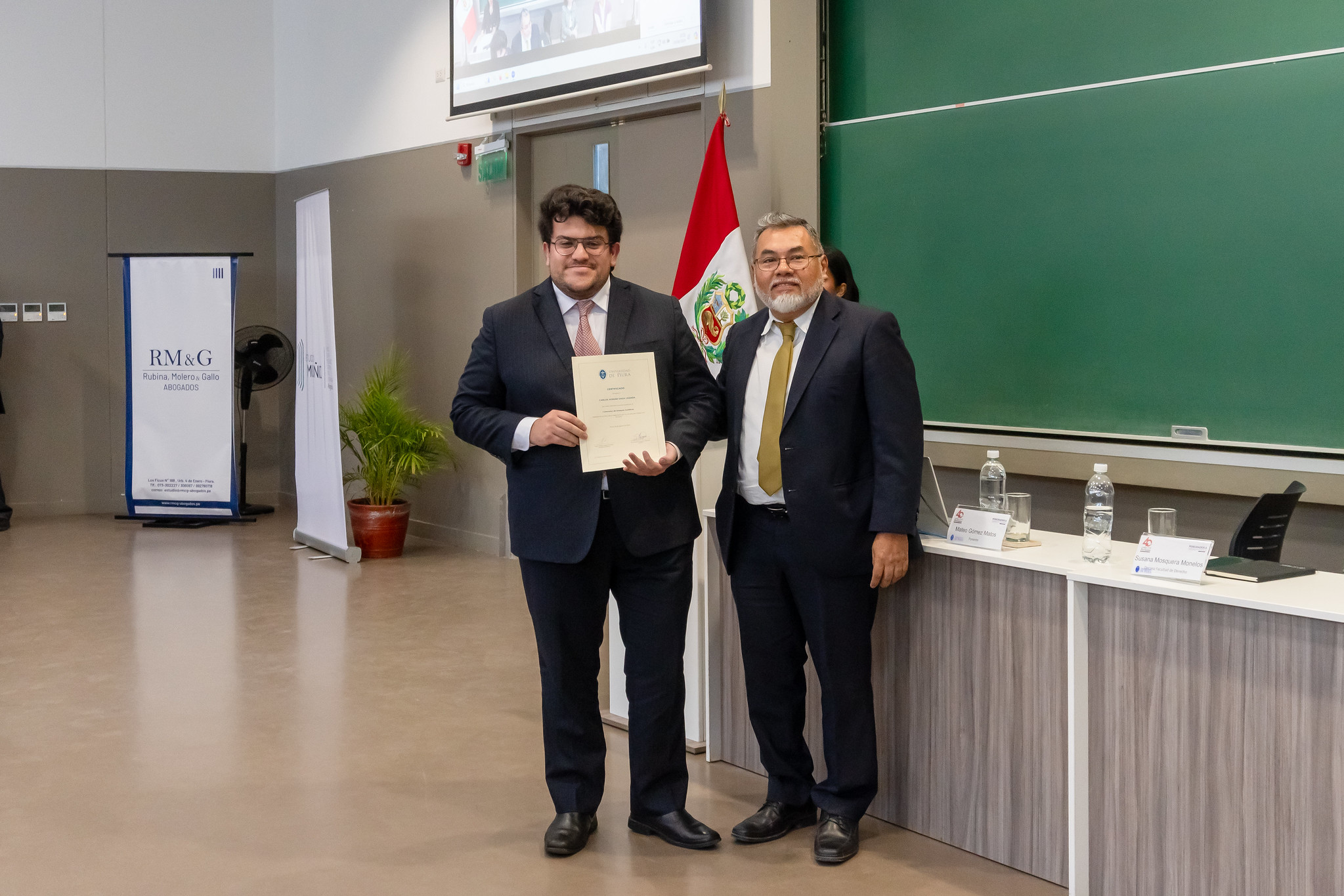 En este marco, el tercer día del congreso se premió a los ganadores del I Concurso de Ensayos Jurídicos, organizado por la facultad. El egresado de Campus Lima, Adrián Daza Lozada, obtuvo el primer lugar con su ensayo “El elefante en la habitación del Código Civil Peruano: una aproximación necesaria a la prueba del daño moral”.