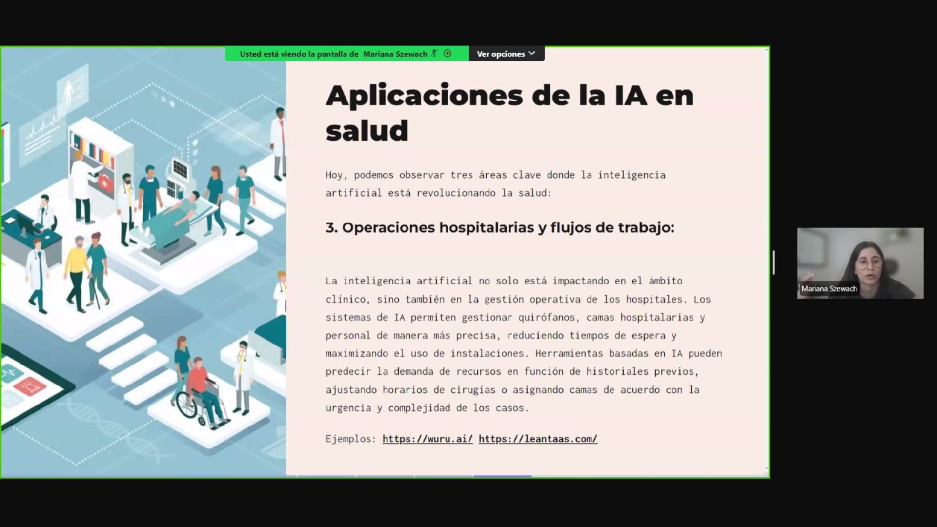 Asimismo, Mariana Szewach expuso “Revolución de la salud: el impacto de la IA”. Detalló el impacto de la inteligencia artificial en diagnósticos y tratamientos médicos.