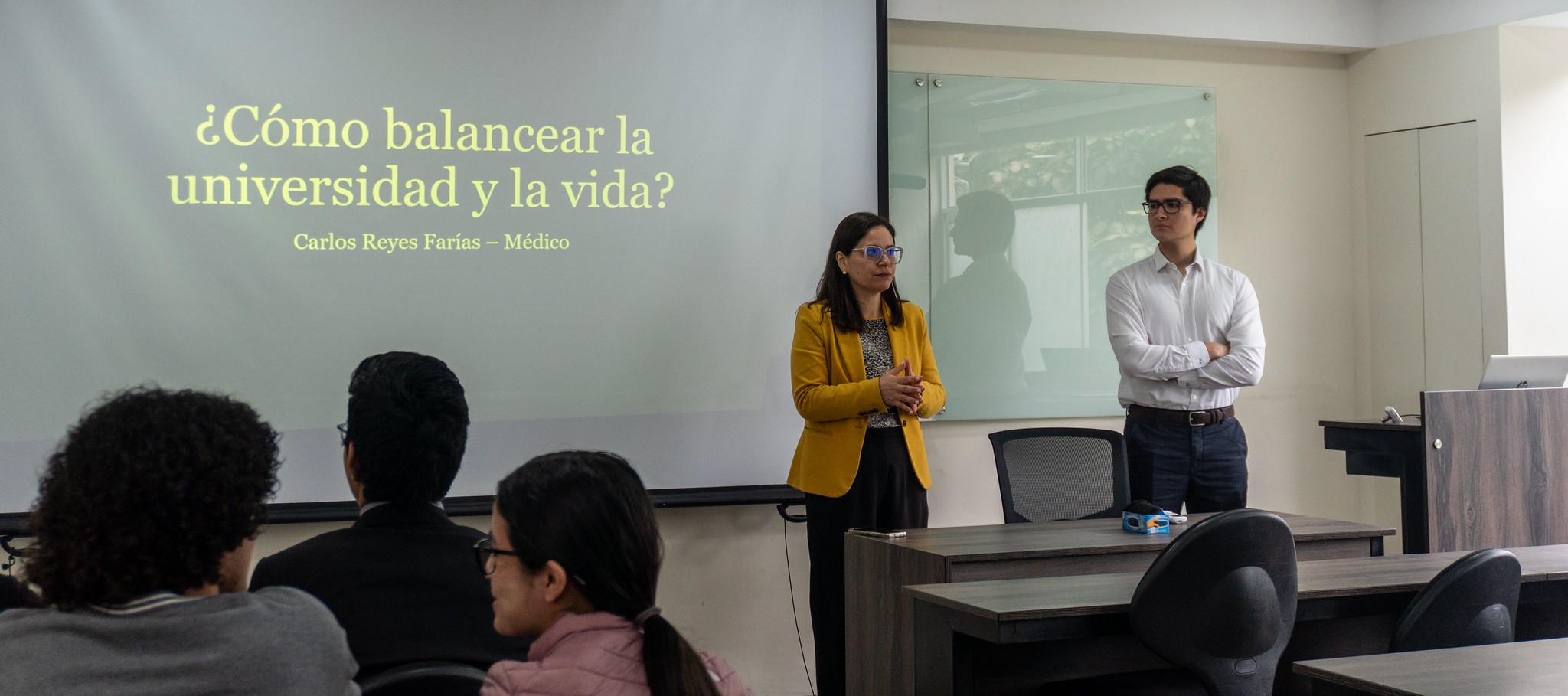 Durante la semana, la facultad también realizó un taller práctico con Carlos Reyes, influencer y egresado de Medicina Humana de la UDEP, quien aconsejó a los estudiantes balancear la vida académica y la personal. Se sumó a esta jornada la psicóloga Mariela Navarro, del área de Psicopedagogía, quien proporcionó herramientas para gestionar el estrés y la ansiedad en la vida universitaria.