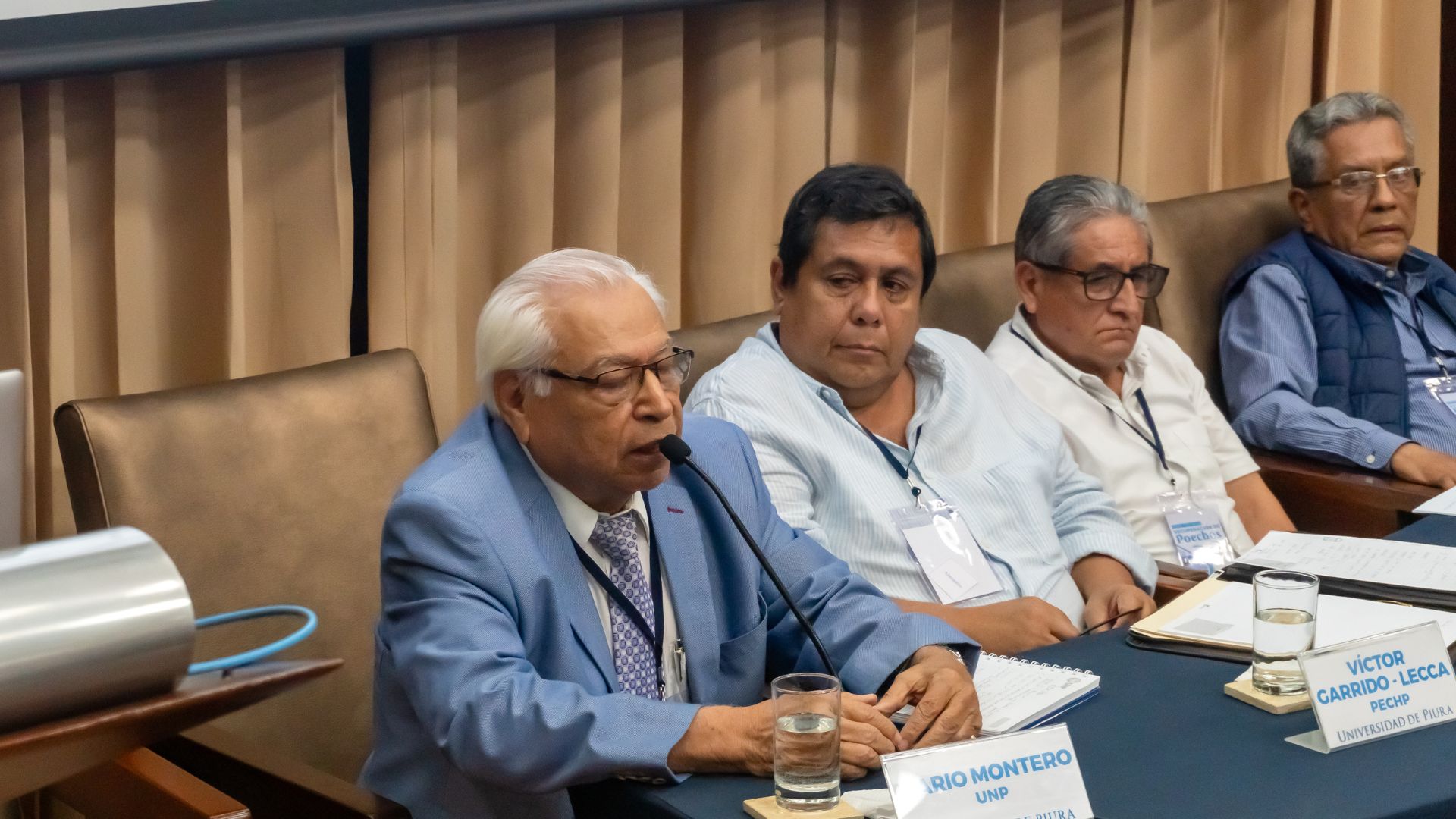 Durante la jornada, siete panelistas expresaron sus opiniones respecto a las propuestas presentadas. En el primer bloque, los panelistas discutieron sobre las alternativas de dragado mecánico y recrecimiento de la represa. Participaron Mateo Gómez, presidente de la Cámara de Comercio y Producción de Piura; Martín Seminario, representante del Colegio de Ingenieros del Perú – sede Sullana; Eduardo Dios, experto de la Dirección de Sudamérica del Ministerio de Relaciones Exteriores del Perú; Francisco Varillas, representante de la EPS Grau y Carlos Barba, presidente de la Cámara de Comercio y Producción de Sullana.