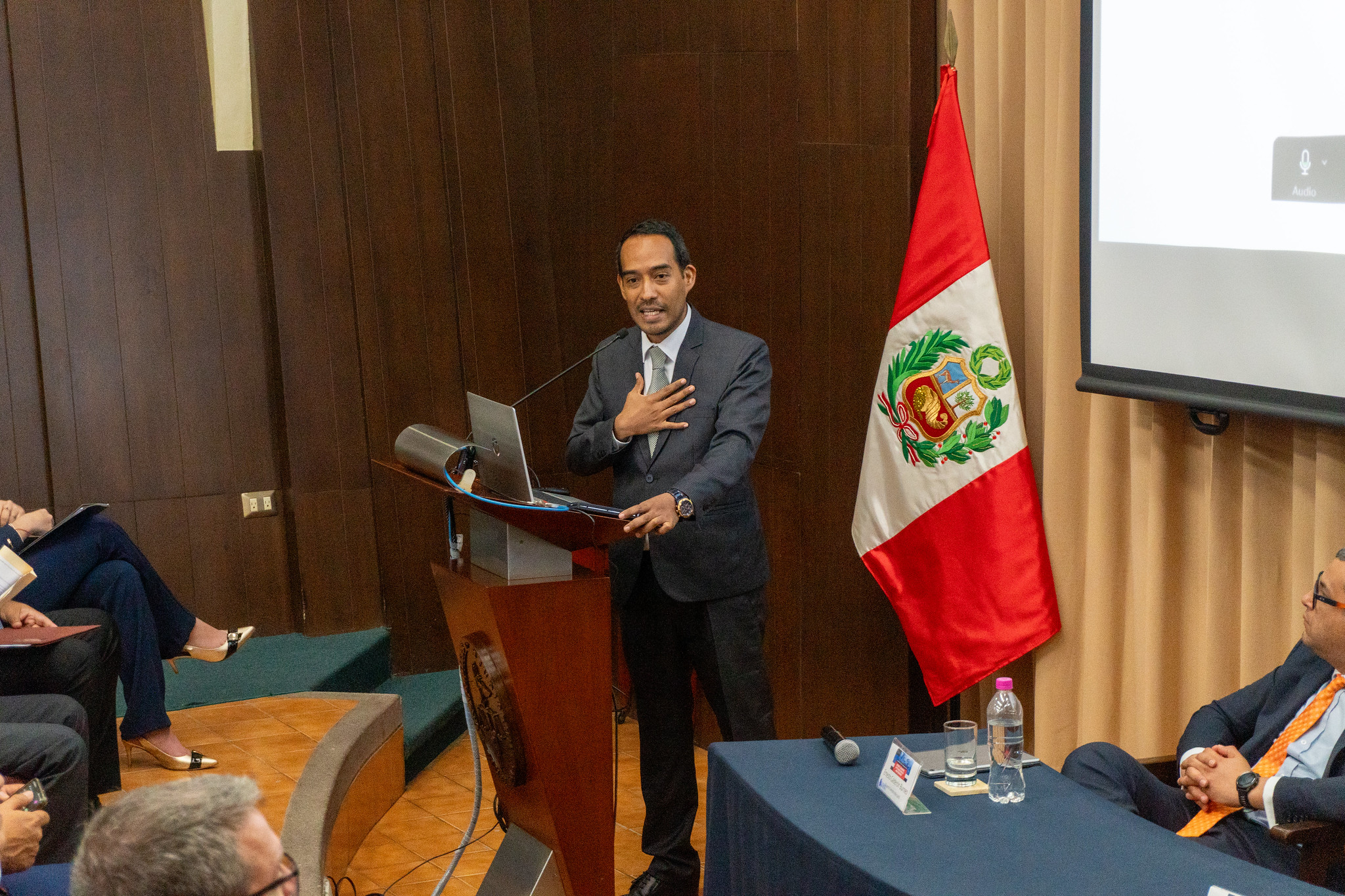 Finalmente, el magíster Pedro Zavala, especialista en Derecho Pesquero y Acuícola, reflexionó sobre el papel histórico del Perú en la soberanía de las 200 millas marítimas y abordó temas como la sostenibilidad de las pesquerías de calamar gigante y concha de abanico, destacando la necesidad de mayor cooperación internacional para la gestión eficiente de los recursos marinos.