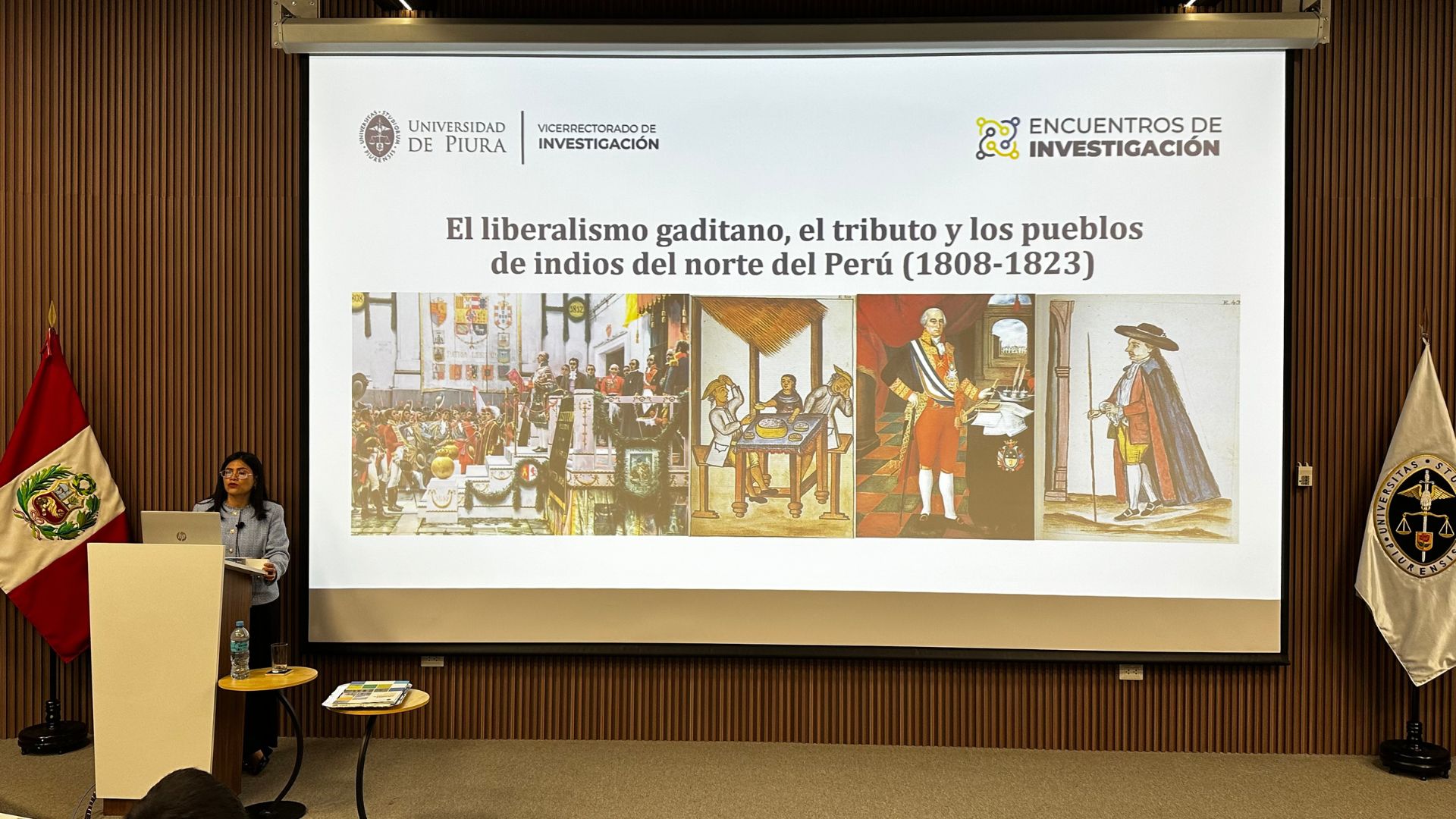 Por Betsy Salazar Guerrero. 13 diciembre, 2024.En el marco de los Encuentros de Investigación, que organiza el Vicerrectorado de Investigación de la Universidad de Piura, Diana Ramos Icanaqué, profesora de la Facultad de Ciencias de la Educación, presentó la investigación “El liberalismo gaditano, el tributo y los pueblos indios del norte del Perú (1808-1823)”.