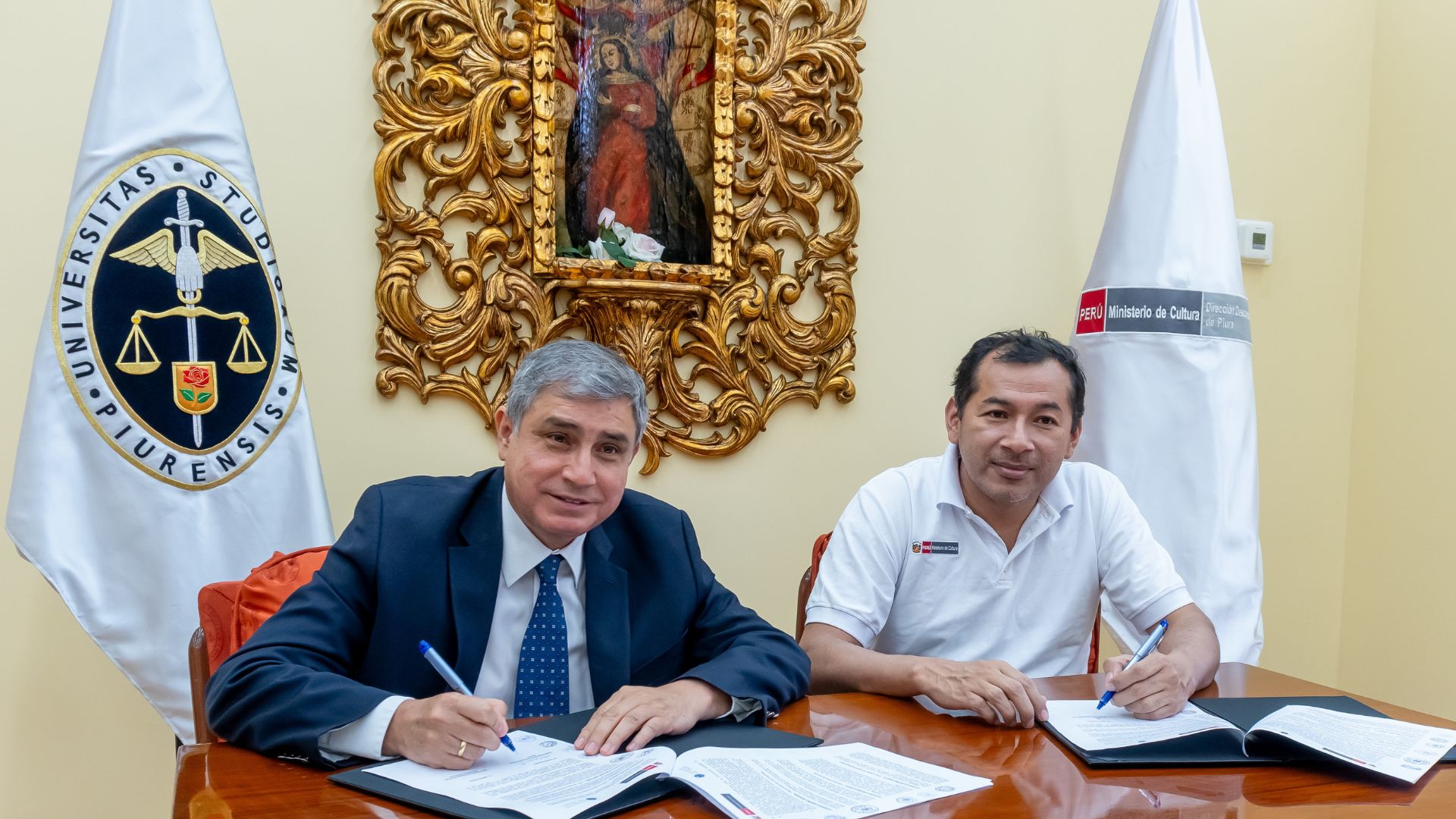 Por Elena Belletich Ruiz. 05 febrero, 2025.Jhon Zapata Ramos, secretario general del Ministerio de Cultura; y, Paul Corcuera García, rector de la Universidad de Piura firmaron un convenio específico de cooperación interinstitucional, en Campus Piura, para establecer lineamientos de cooperación y coordinación para el cumplimento de los objetivos.