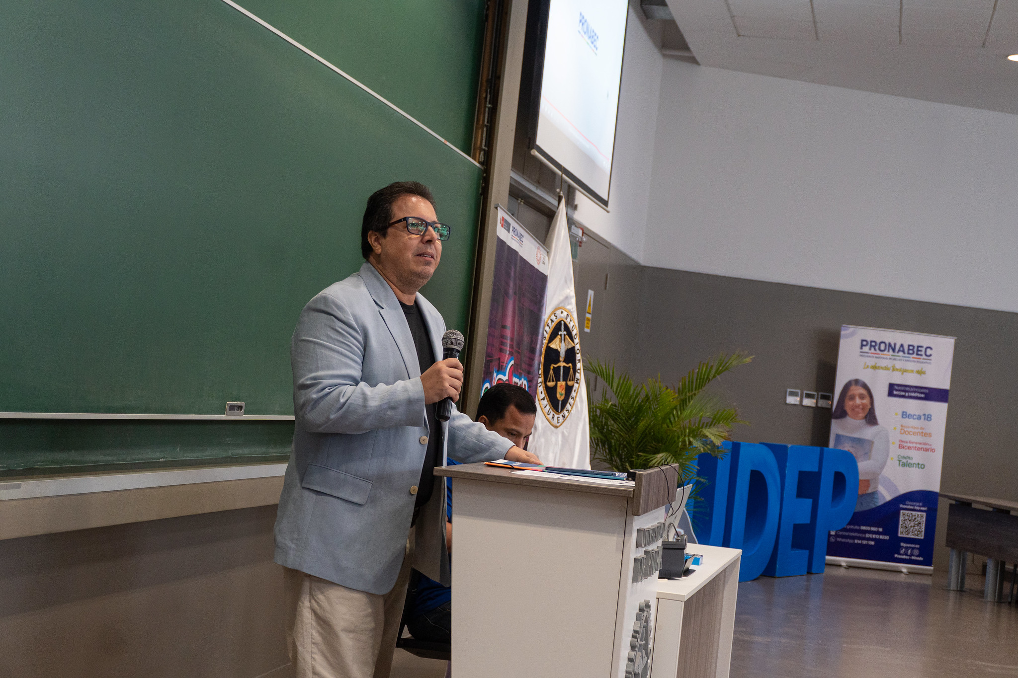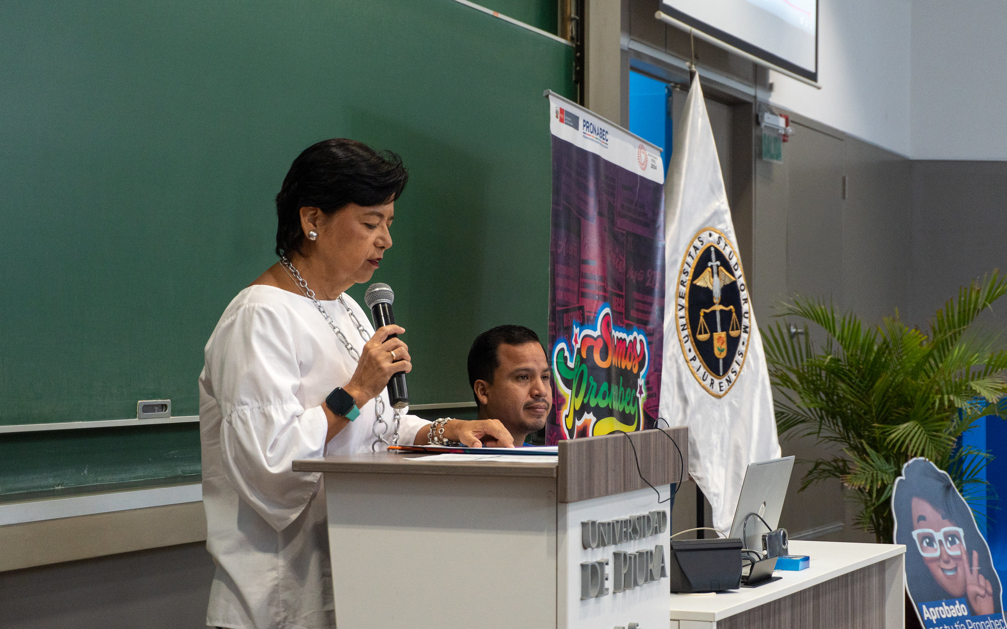 El evento comenzó con las palabras de bienvenida de Patricia Soto, directora de Estudios de la UDEP; de Reinaldo Serra, gerente de Asuntos Públicos del Grupo Gloria; y, de Nery Verónica, subdirectora del Succor Piura del Pronabec.