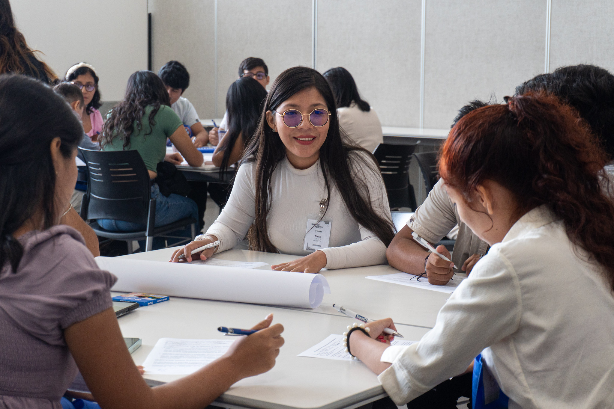 Al final de las exposiciones, los jóvenes fueron distribuidos en diferentes salas de estudio para participar en los talleres realizados por facilitadores del Grupo Gloria. En ellos, fortalecieron las habilidades de comunicación, trabajo en equipo y resolución de conflictos de los becados.