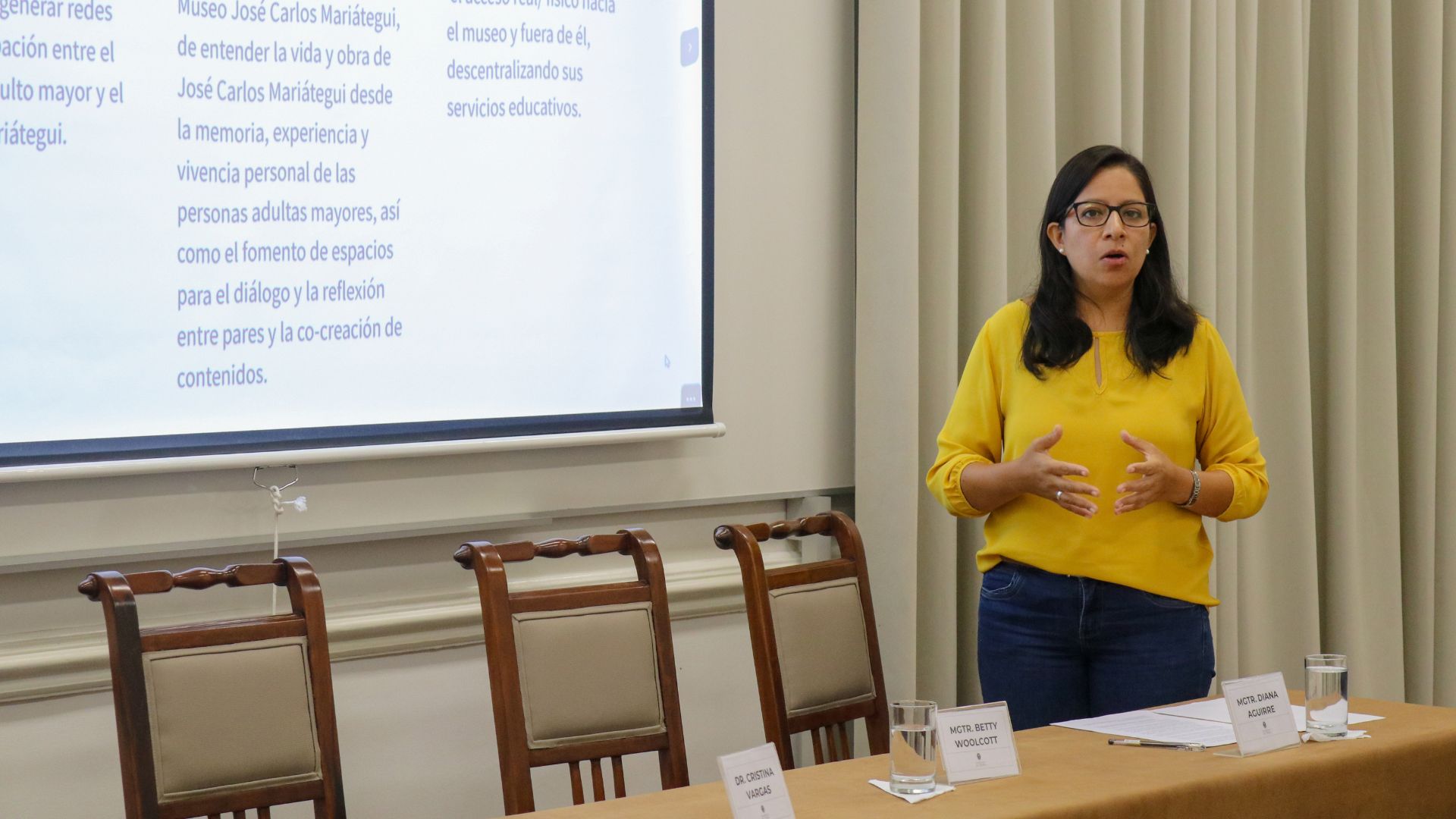 En su presentación, la magíster Diana Aguirre presentó Reflexiones sobre la participación de las PAM en el ámbito cultural en Lima. En su intervención, enfatizó la necesidad de adaptar los museos para garantizar accesibilidad física y comunicativa.