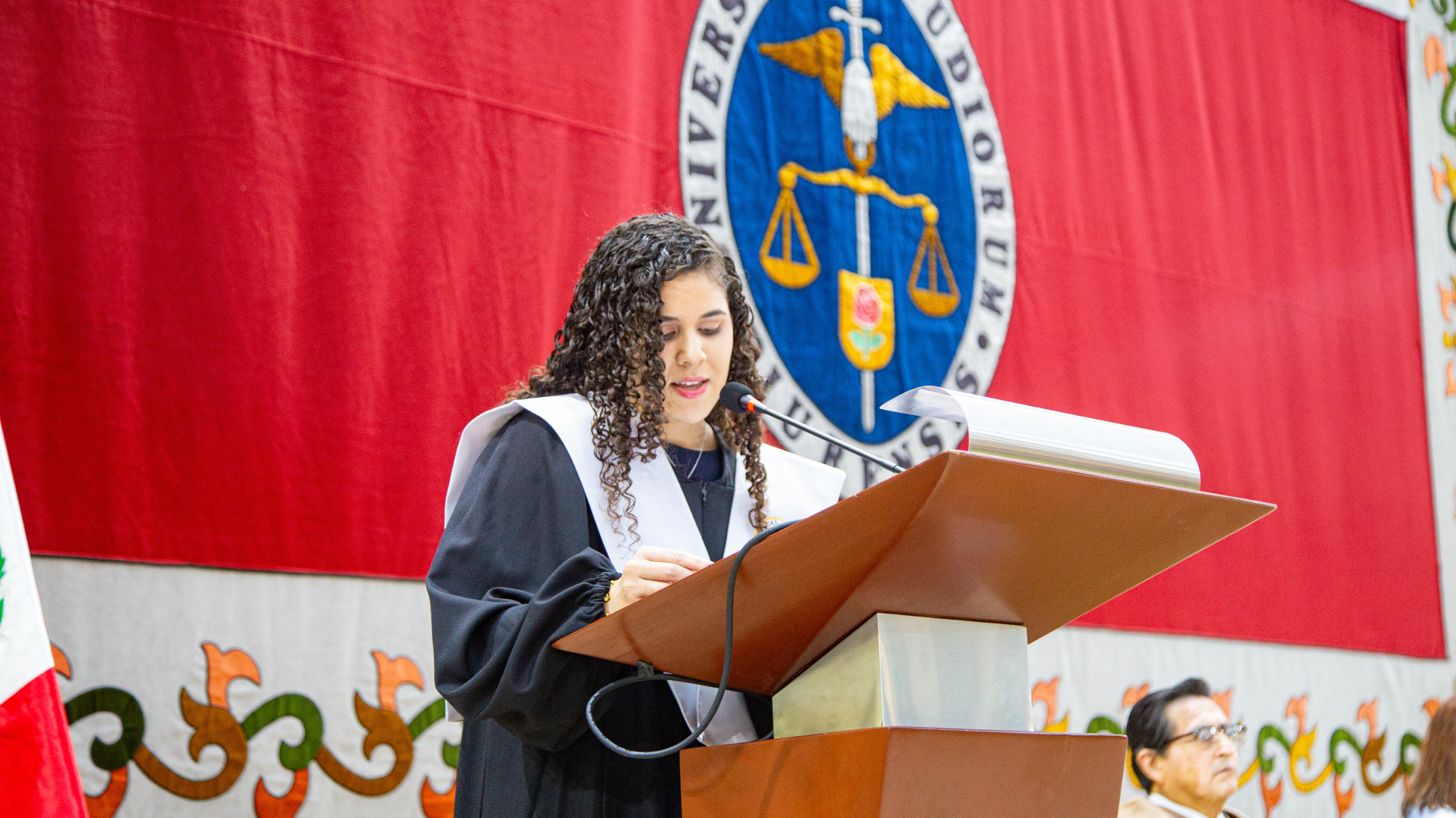 María Alejandra Salgado, egresada de la primera promoción de Historia y Gestión Cultural de Campus Lima, en representación de los egresados, recalcó el impacto que la UDEP ha tenido en la formación de cada uno de ellos y destacó los valores inculcados en esta casa de estudios.