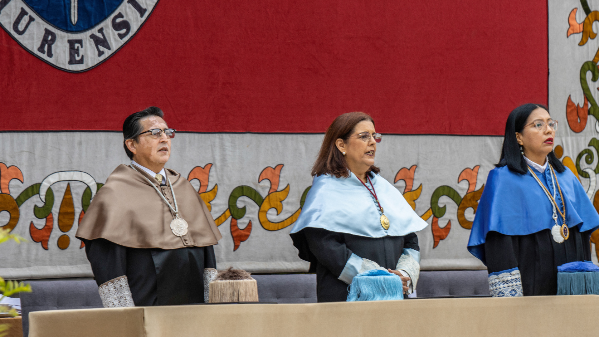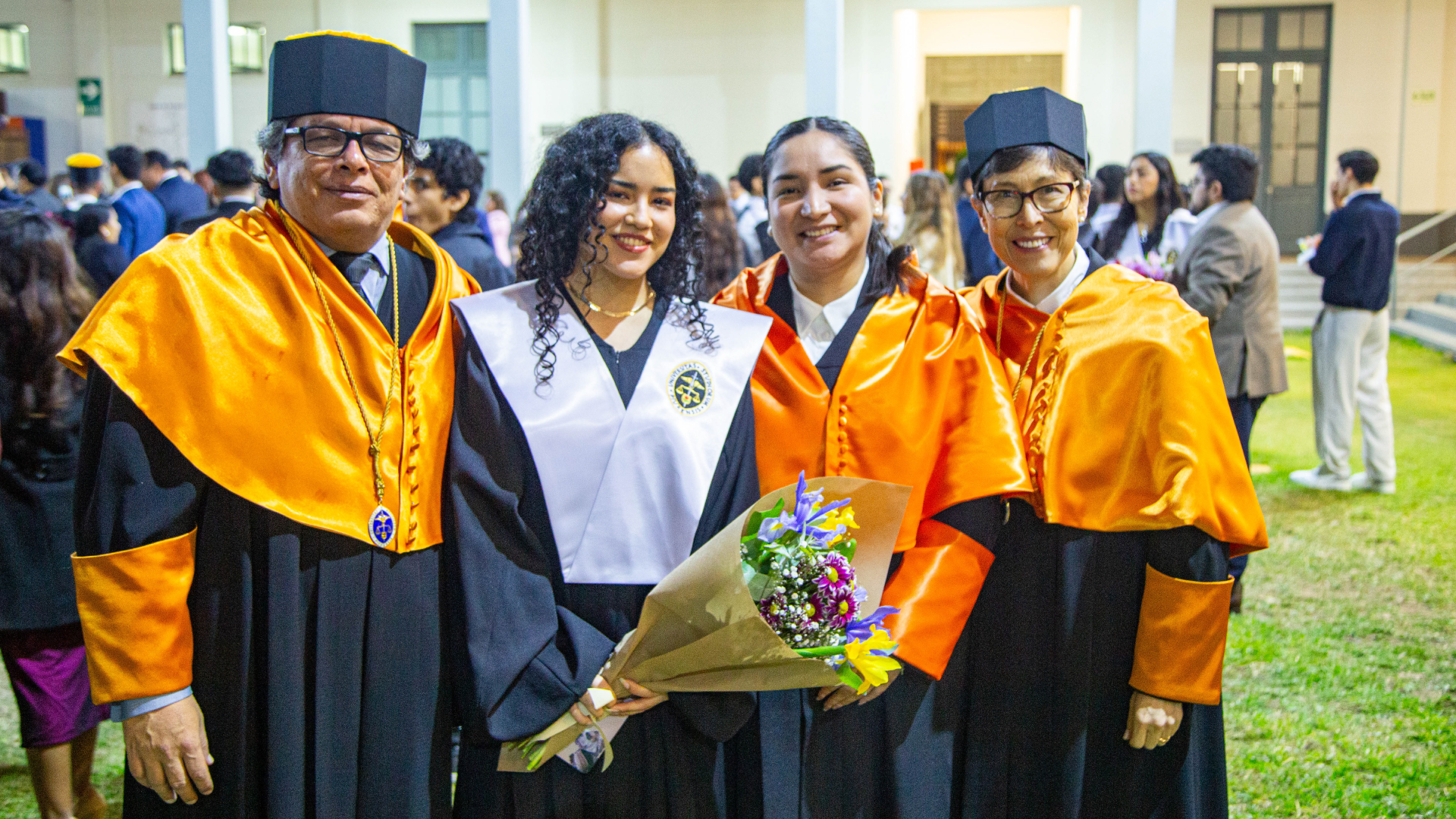Presidieron la ceremonia los doctores María Pía Chirinos, vicerrectora de Campus Lima; Eliodoro Carrera, director de estudios del mencionado campus; y Julissa Gutiérrez, decana de la Facultad de Humanidades.