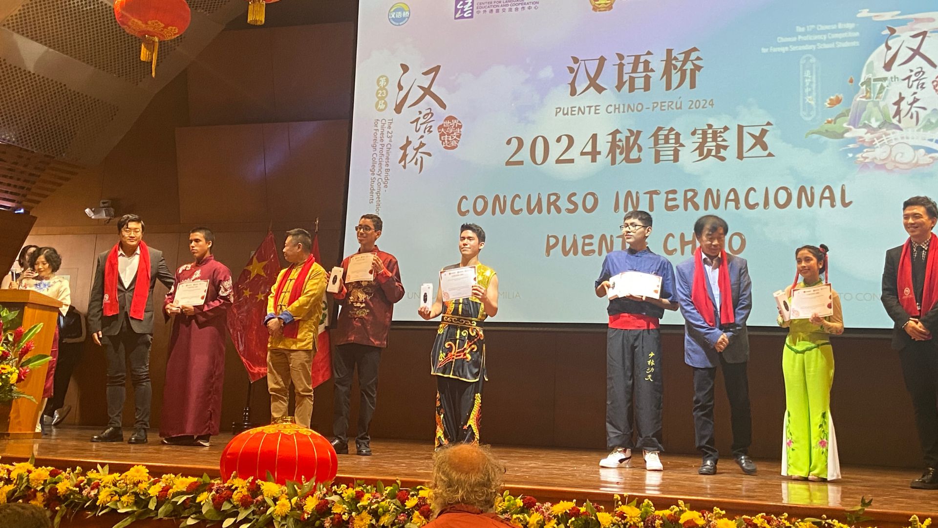 “Puente Chino” es un concurso internacional que busca fortalecer los lazos de amistad entre China y el mundo y promover la cultura china a través de demostraciones de talentos y del dominio de la lengua china. Cada año, estudiantes de chino de colegios peruano chinos y de los institutos Confucio de todo el mundo compiten en dos fases: nacional e internacional. En la primera, cada país elije a su representante para la fase internacional que se desarrolla en Pekín, China.