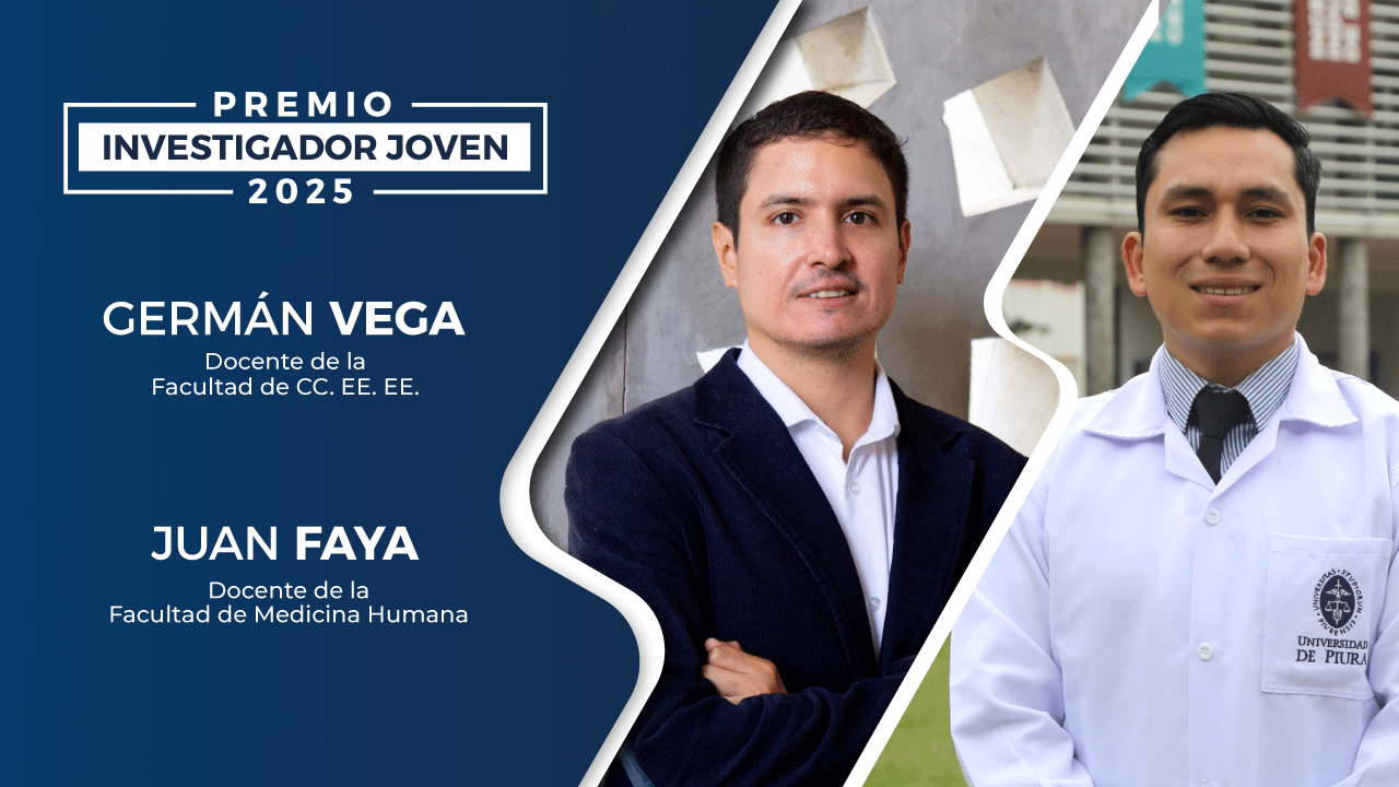 Por Graciela Tuesta. 01 julio, 2025.En la edición 2025, el Premio Investigador Joven ha otorgado el reconocimiento a dos profesores de la Universidad de Piura, menores de 35 años: Germán Vega (Ciencias Económicas y Empresariales) y Juan Faya (Medicina Humana), en mérito a su destacado esfuerzo y por su compromiso, desde temprana edad, a contribuir de manera rigurosa, con la investigación y su impacto en la sociedad.