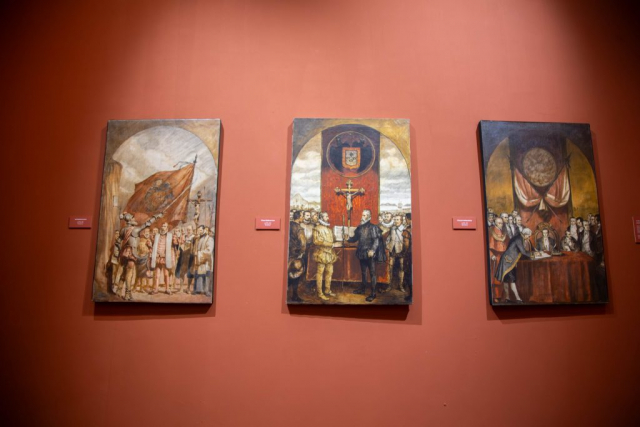 En la descripción de cada una de las obras, el artista detalla sus composiciones: personajes, roles y los elementos que apoyan las acciones que realizan. Estos cuadros, emblemáticos murales, fueron una línea de acceso para rescatar el ideal patriótico. En ello, se entregó con agrado al retrato histórico: incas, virreyes, vírgenes, cristos, y muchos personajes que hablan de la quinta esencia del Perú, la conexión con la identidad cultural del país.