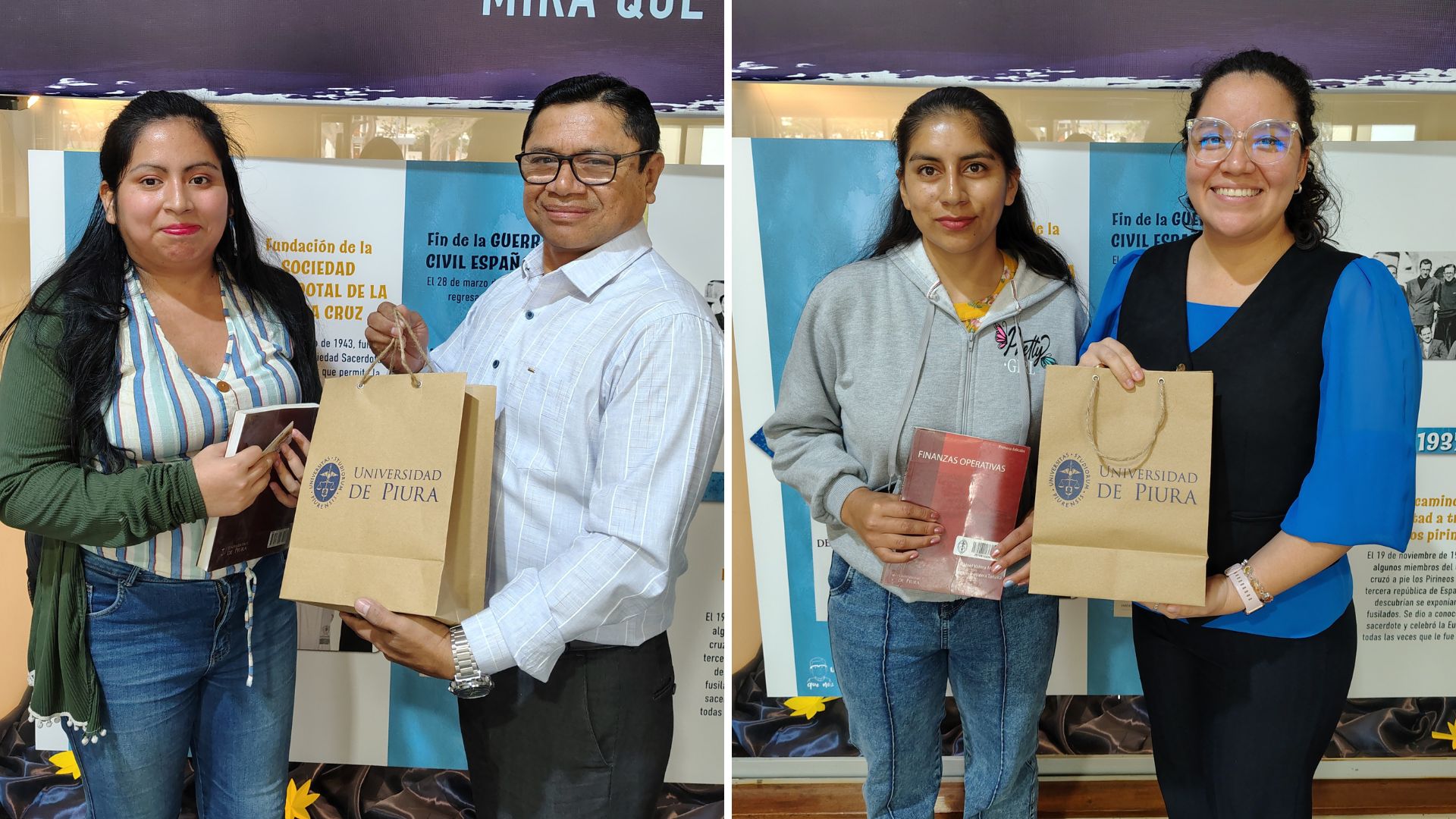 Las alumnas premiadas fueron Valeria Sandoval Llacsahuanga y Elita Martínez Pusma, alumnas de Administración de empresas. También, se reconoció a Marcos Bancayán Siancas, estudiante de Ingeniería Civil y lector frecuente de los libros de literatura de entretenimiento.
