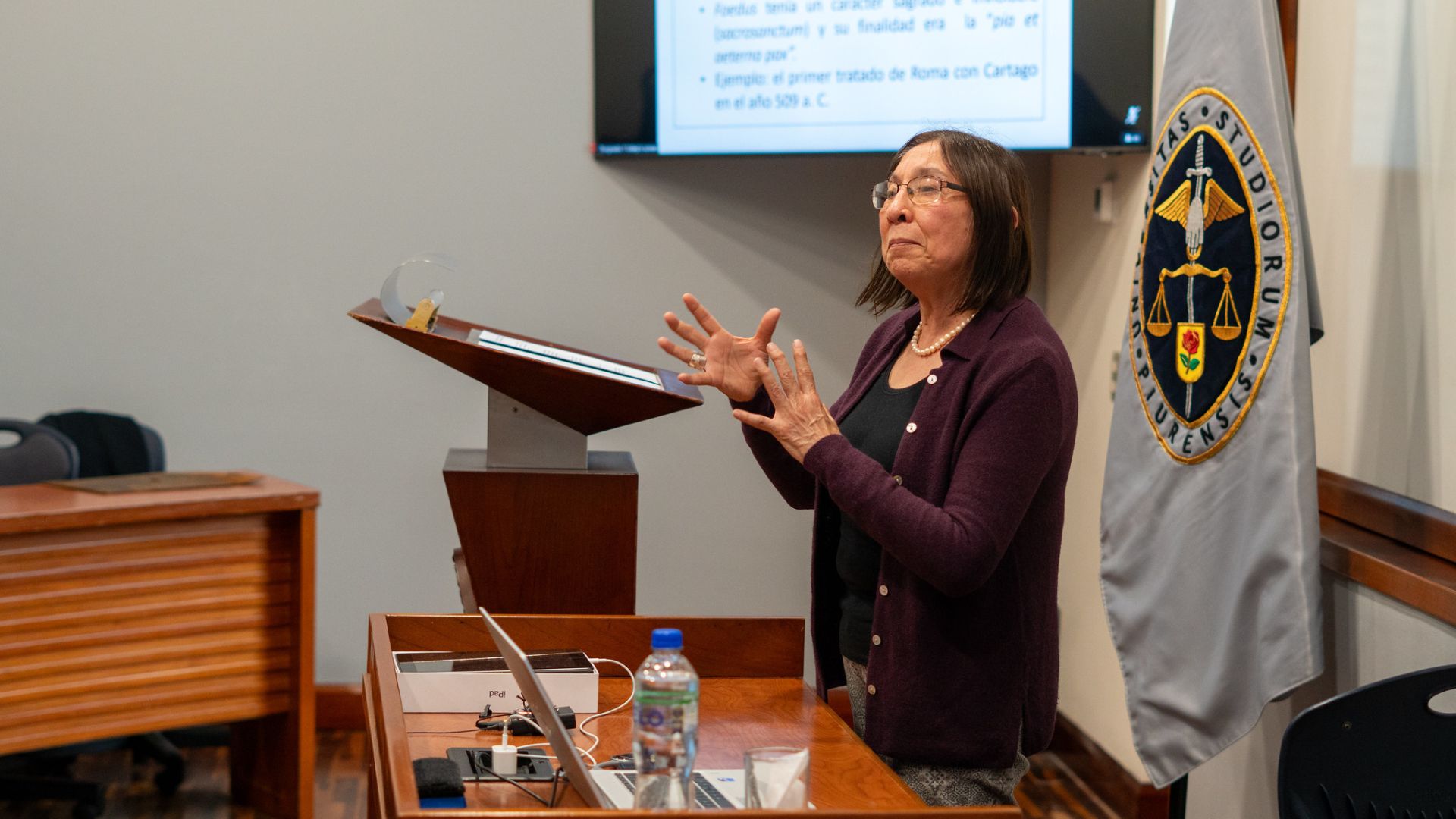 Finalmente, la doctora Méndez Chang desarrolló “El Derecho romano y la formación del jurista en el Derecho internacional”.