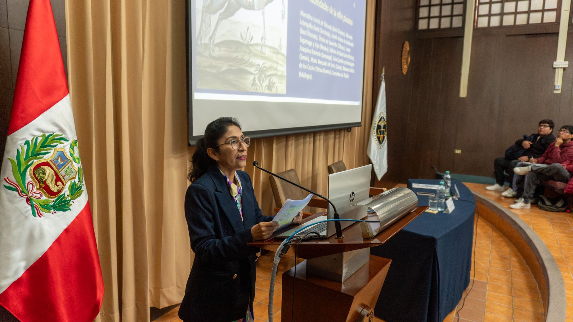 Las ponencias abarcaron diversos ámbitos de la gestión cultural. Angy Gonzales, Yamile Carrascoy Sofía Jaramillo (2.do año) presentaron el Proyecto Francisco González Gamarra. Carlos López Gomero (4.to), compartió su experiencia de voluntariado en el Archivo Histórico Militar, mientras que Joshua Díaz Ortiz, también de cuarto año, expuso sobre su participación en el debate MUN.