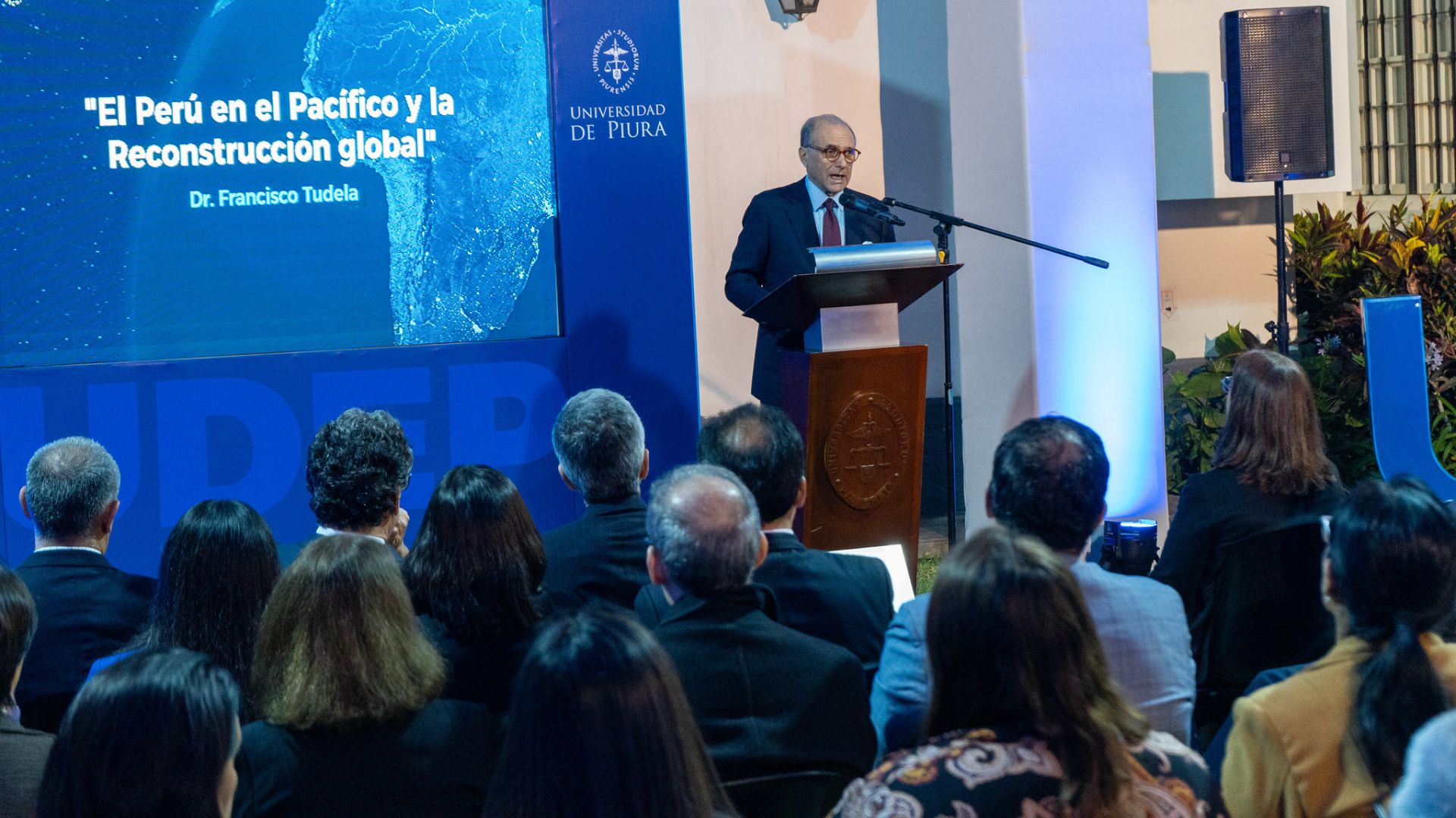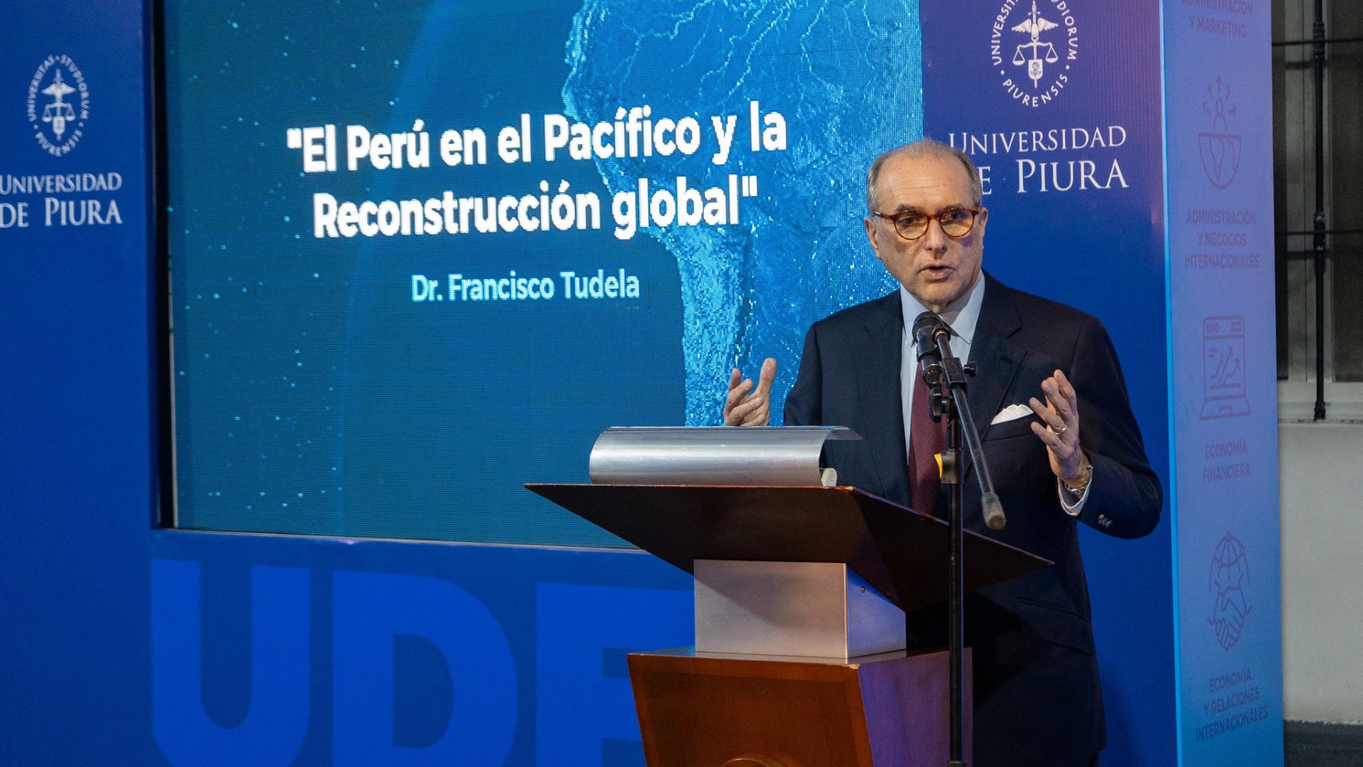 Por Gianfranco Quispe Alarcón. 20 noviembre, 2025.El doctor Francisco Tudela ofreció la conferencia magistral “El Perú en el Pacífico y la reestructuración global”. Fue durante la presentación oficial de cuatro nuevas carreras de la Universidad de Piura en Campus Lima: Economía Financiera, y Administración y Marketing; Administración y Negocios Internacionales, y Economía y Relaciones Internacionales. Todas estarán disponibles en los campus de Piura y Lima. El evento tuvo lugar el 13 de noviembre en la Casona Pardo (Miraflores-Lima).