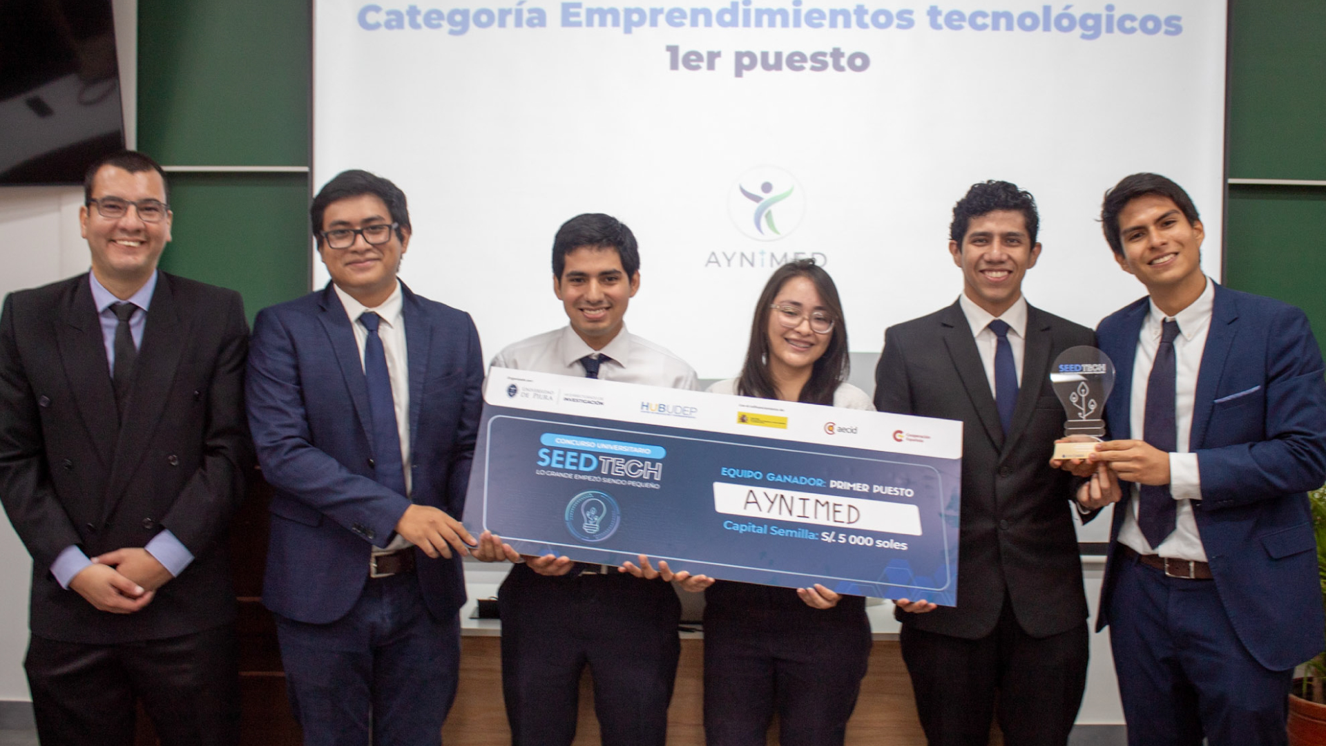 En la categoría Emprendimientos Tecnológicos, el primer lugar fue de AyniMed, dispositivo médico multifuncional en complemento con una plataforma de seguimiento. Este implementa módulos de electrocardiografía, espirometría y monitoreo de signos vitales para atención primaria de triaje (emergencia) y servicio ambulatorio.