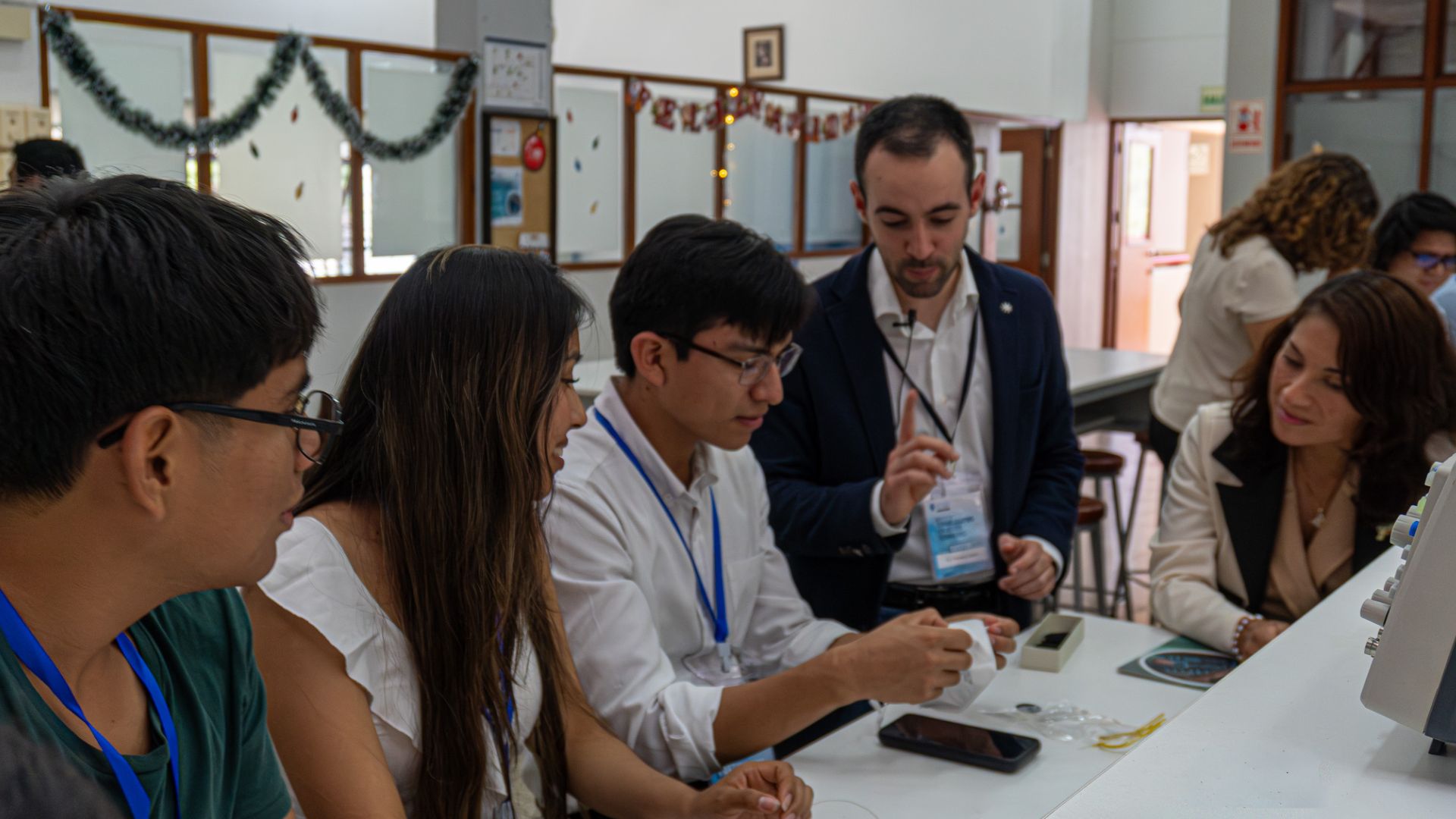 Durante las jornadas, los estudiantes de la UDEP, la Universidad Nacional Mayor de San Marcos y la Universidad Nacional de Piura participaron de hands-on. Uno de ellos fue guiado por los ingenieros Vincenzo Saroli e Isabel Moscol y se centró en el diseño, desarrollo y caracterización de sensores portables personalizados. Para ello, se empleó la técnica de Modelado por Deposición Fundida (FDM) e impresión 3D, utilizando como material principal poliuretano termoplástico mezclado con negro de carbono (CB-TPU), creando el empaque del sensor que combina la flexibilidad y durabilidad del TPU con la conductividad eléctrica del CB.