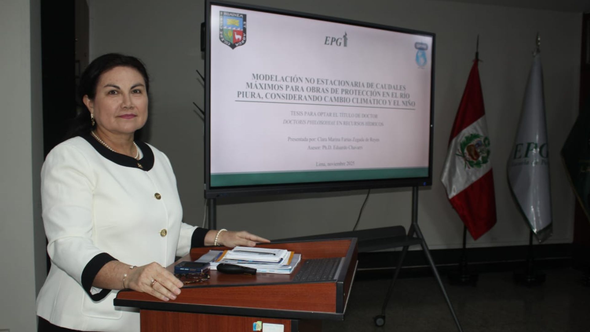 Tras cuatro años de intenso estudio e investigación, la docente de pre y posgrado de la Facultad de Ingeniería de la Universidad de Piura sustentó la tesis titulada “Modelación no estacionaria de caudales máximos para obras de protección en el río Piura, considerando cambio climático y El Niño”.