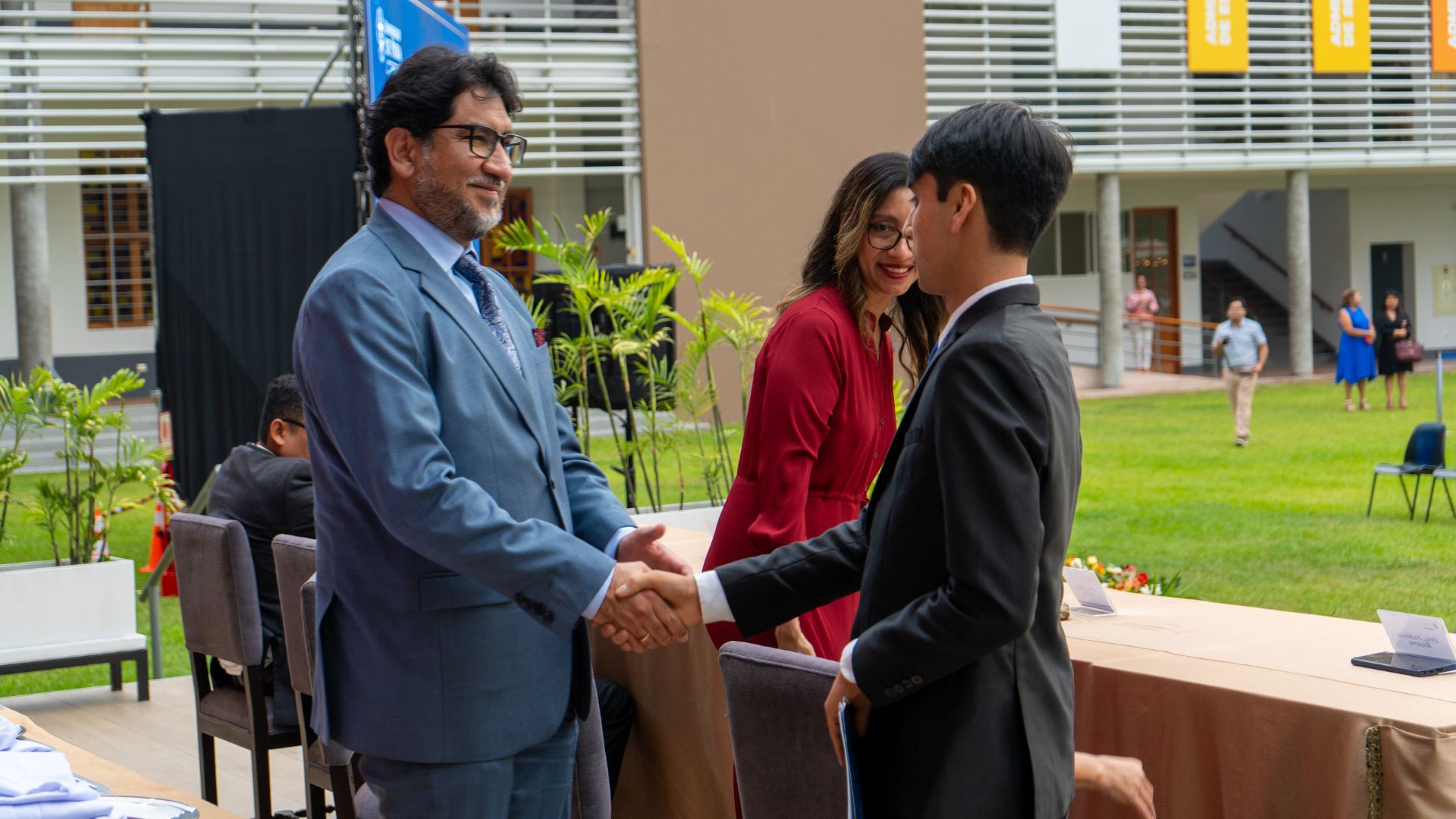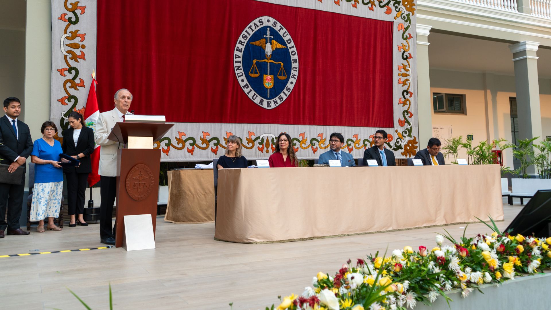 El decano de la Facultad de Medicina Humana, doctor Jorge Zagaceta, destacó los diez años de trayectoria de la facultad: más de cien egresados, más de ochocientos profesores, más de ciento treinta publicaciones y más de quinientos alumnos de posgrado y formación continua. Resaltó, además, los resultados obtenidos por los estudiantes de pregrado en evaluaciones externas como el Examen Nacional de Medicina (ENAM), el examen de EsSalud para el internado médico y el del Minsa para el Serums.