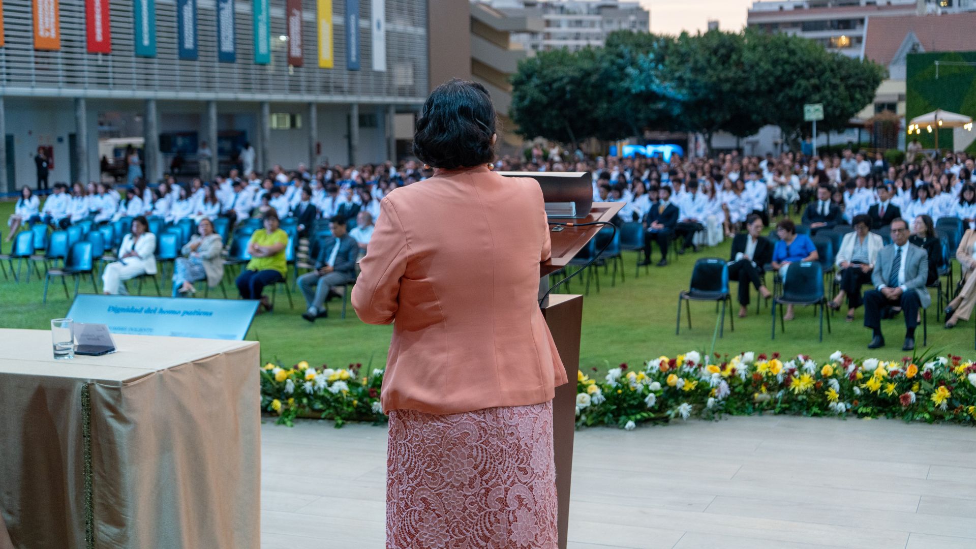 Asimismo, los animó a mirar más allá de los contenidos académicos: “A lo largo de estos años aprenderán ciencias básicas, desarrollarán habilidades clínicas y enfrentarán desafíos académicos importantes. Al mismo tiempo, aprenderán algo más trascendente: a escuchar con atención, a acompañar con respeto y a actuar con responsabilidad frente a la salud de la sociedad”. Concluyó citando a san Josemaría Escrivá, fundador del Opus Dei y de la UDEP: “Para servir, servir”.