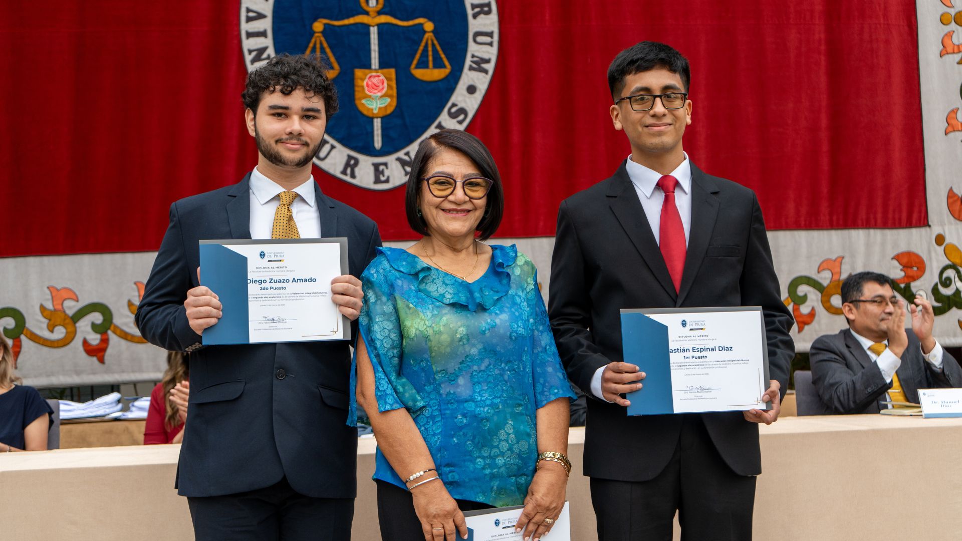Luego, la doctora Nancy Rojas encabezó la entrega de diplomas al mérito a los alumnos con los mejores promedios del año académico 2025. Fueron distinguidos los estudiantes del primero al sexto año: Darío Marín Guevara, Sebastián Espinal Díaz, Fabio Zegarra Gálvez, Andrew de la Cruz Torre, Josué Flores Espejo y Dayana Espinoza Rodríguez, quienes obtuvieron el primer lugar en la valoración integral de sus respectivos ciclos.