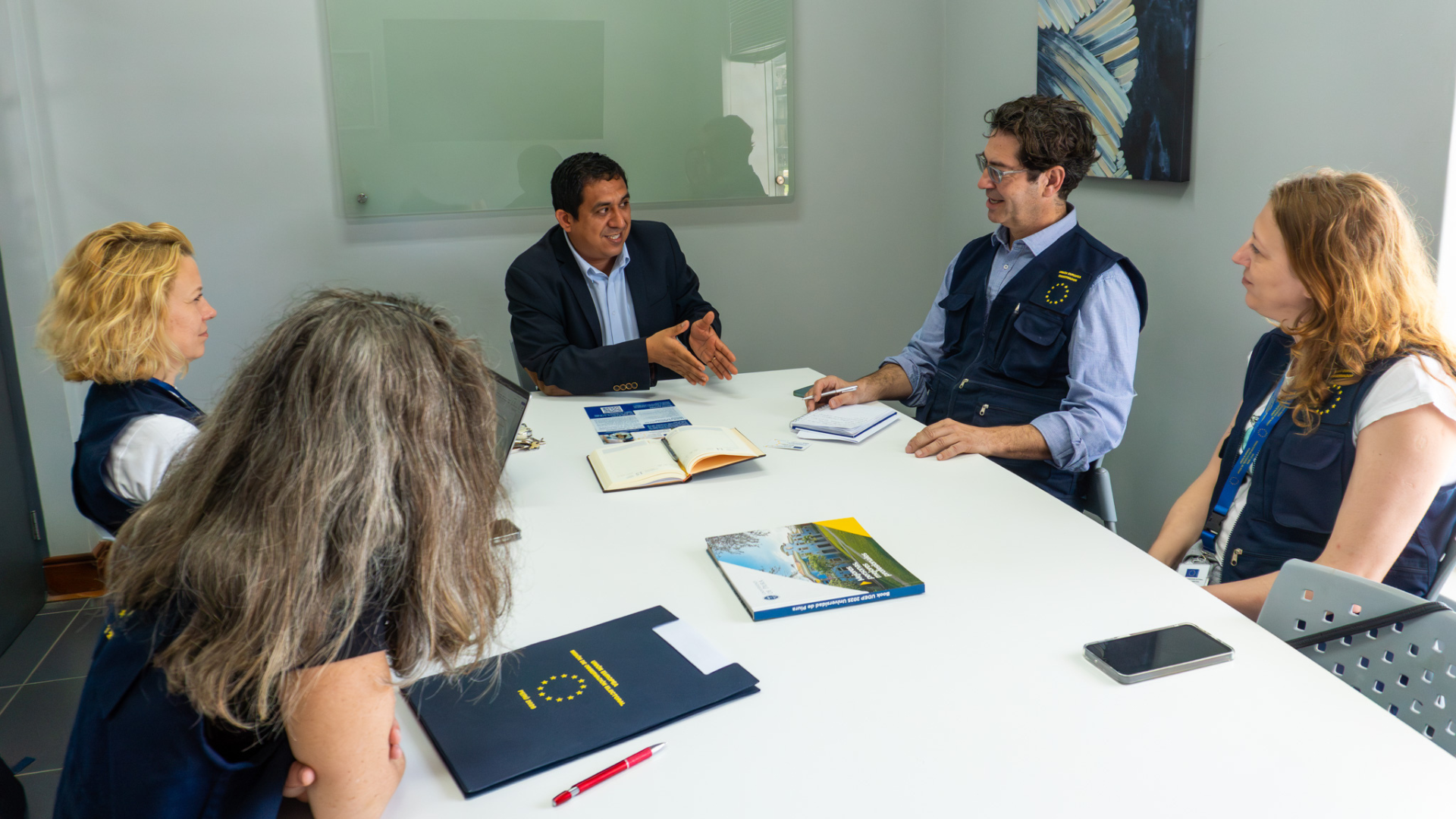 El doctor Fernando Huamán Flores, profesor de la Facultad de Comunicación de la UDEP sostuvo una reunión de trabajo con representantes de la Misión de Observación Electoral de la Unión Europea (MOE UE).