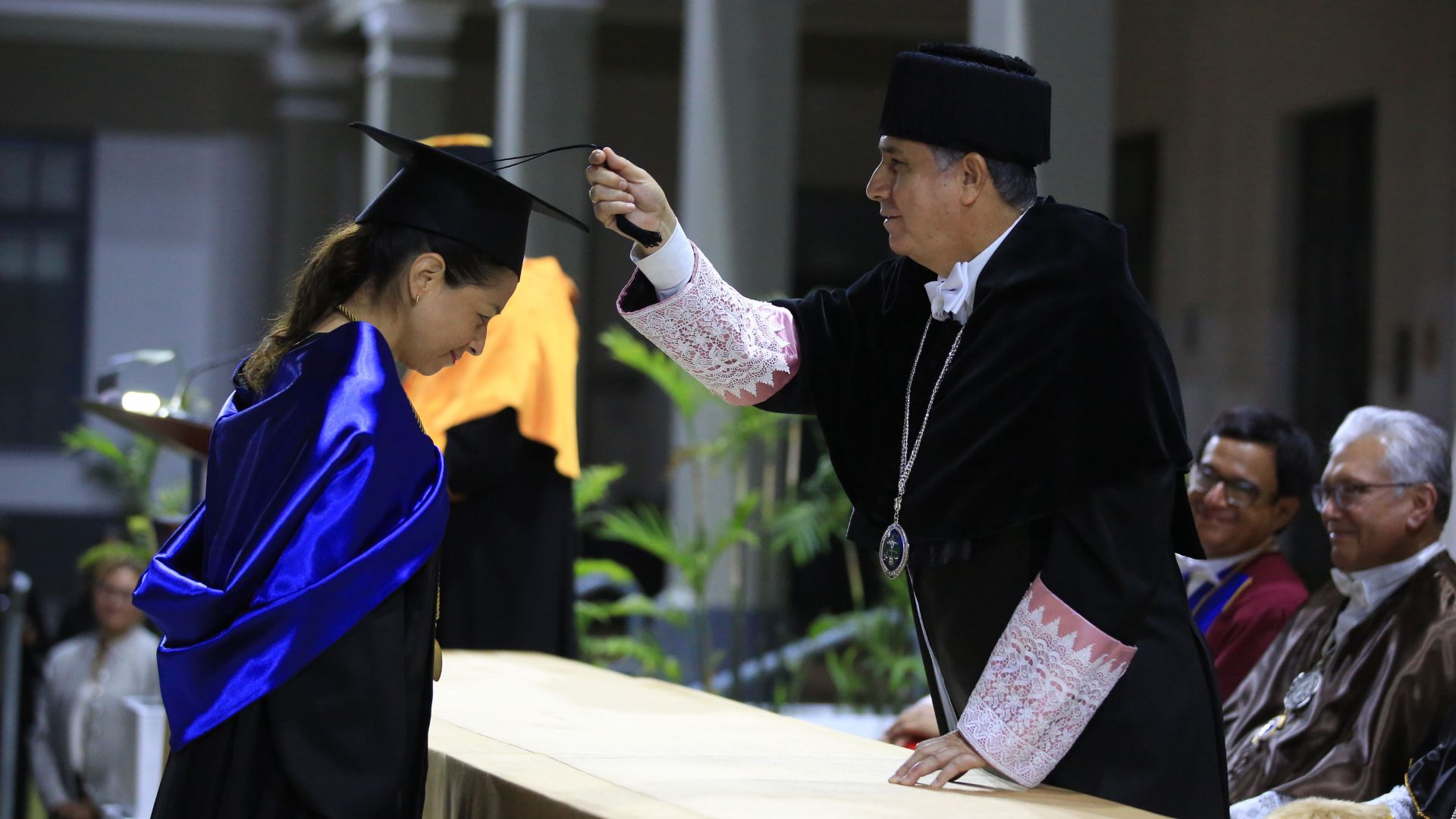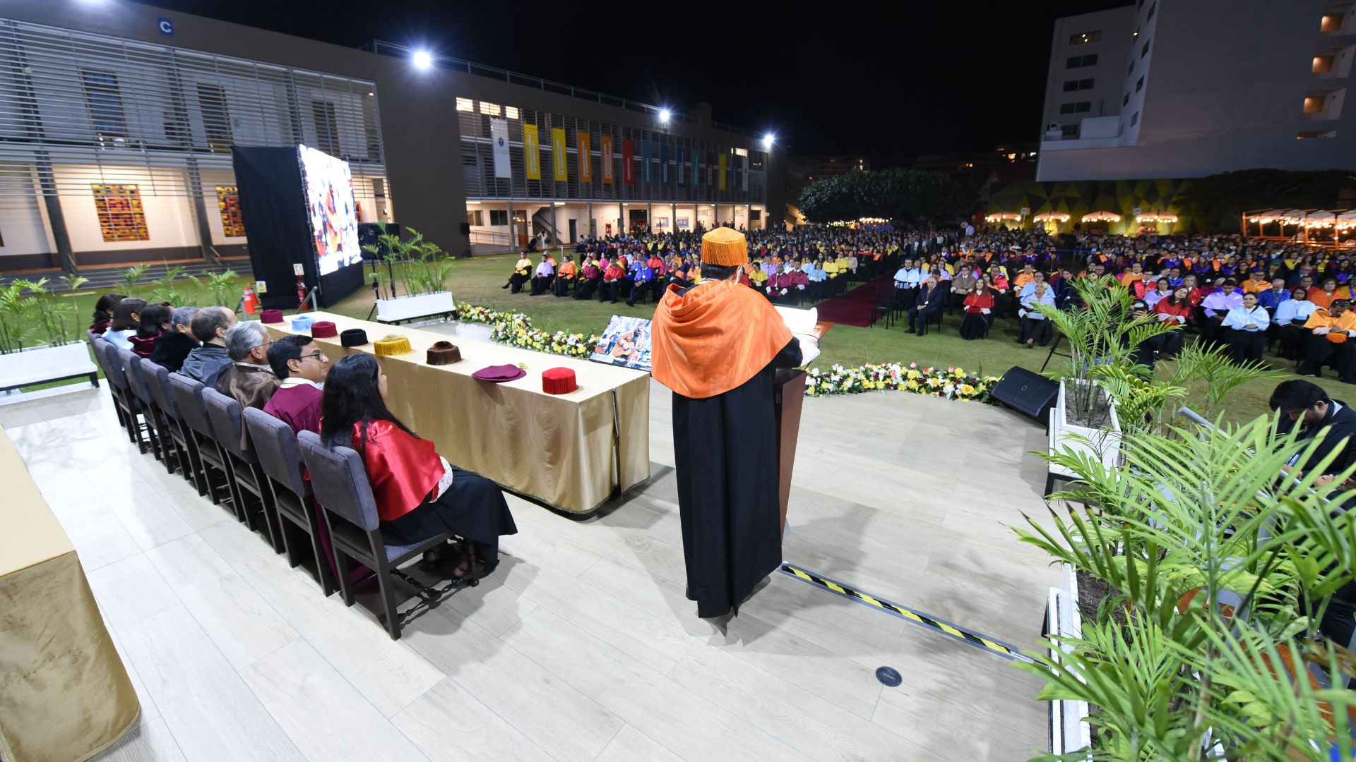 Presidió la ceremonia el Vice Gran Canciller, doctor Álvaro Palacios Diez, acompañado por el rector, Paul Corcuera; el prorrector, Dante Guerrero; la vicerrectora Académica, Susana Vegas; el vicerrector de Investigación, Marcos Agurto; la vicerrectora de Campus Lima, María Pía Chirinos; la directora de Estudios, Rosalba Guerrero, y la secretaria general, Ana María Becerra.