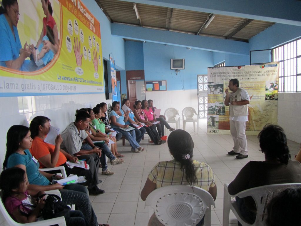 Proyecto: “Mejora de las condiciones de salud básica y calidad educativa de poblaciones rurales fronterizas peruano ecuatorianas del distrito de Lancones, Piura-Perú” Objetivo El proyecto buscó mejorar el sistema educativo con equidad, innovando la educación y promocionando una cultura emprendedora, integrando escuela y familia, como vía para el desarrollo sostenible del distrito de Frías. El proyecto tuvo como objetivo mejorar la salud básica y la calidad educativa pública rural de cuatro caseríos fronterizos del distrito de Lancones, a través de la implementación de servicios de saneamiento articulado a un programa de educación sanitaria y el acceso de una escuela de Lancones a sistemas informáticos, fortaleciendo la capacidad de organización de la población y revalorando el papel de la mujer en el desarrollo de la comunidad. Beneficiarios Pobladores de los caseríos fronterizos Chilaco Pelados, Pueblo Nuevo, La Palma y Sauzal. Distrito de Lancones. Departamento de Piura. Convocatoria Entidad solicitante Socio Local Ubicación Duración