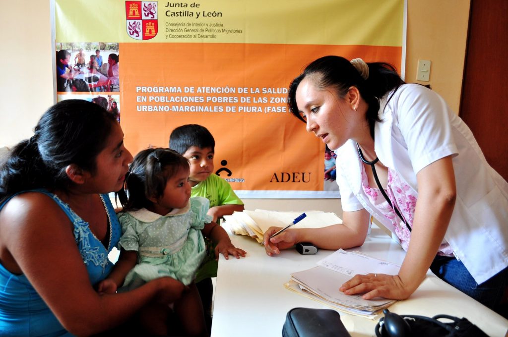 Proyecto “Atención de la salud materna e infantil en poblaciones pobres de las zonas rurales y urbano-marginales de Piura, Perú” Objetivo Este proyecto buscó contribuir a mejorar la salud de personas en situación de pobreza y extrema pobreza a través de la prevención primaria, mediante el desarrollo de programas preventivo-promocionales. En lo que respecta a la prevención secundaria, se promovió y facilitó el acceso de la población a los Puestos de Salud ya existentes y se construyó un área de cirugía del Centro Materno Infantil en el que se atienden los casos de mayor complejidad. Todas estas acciones tienen como fin reducir las elevadas tasas de morbilidad y mortalidad de la zona de intervención, especialmente de la materna e infantil, así como el fortalecimiento de las organizaciones locales de base. Beneficiarios 👥 35 689 personas Pobladores del Medio Piura (Margen derecha del Río Piura) y del Asentamiento Los Algarrobos. Entidad solicitante Socio Local Ubicación Duración Monto solicitado