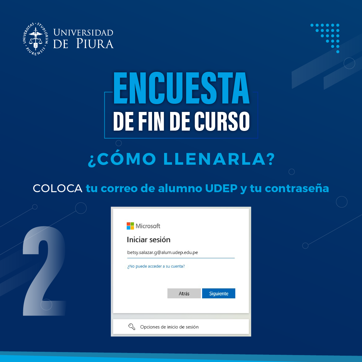 Si tienes alguna dificultad, escríbenos a mesadeayuda@udep.edu.pe, con el asunto Encuesta de Fin de Curso.
